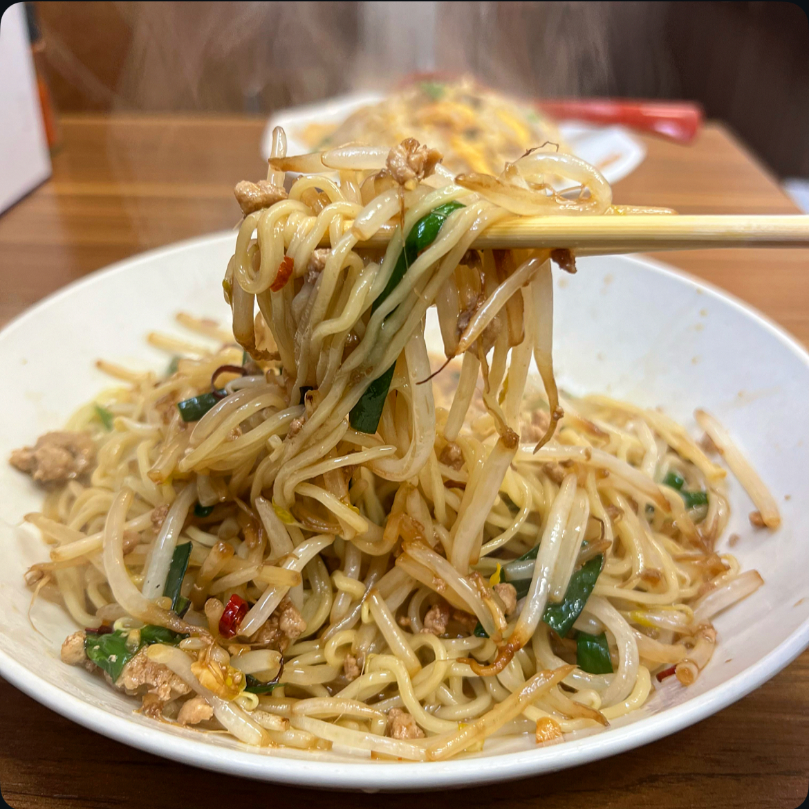 特製のタレであえた中華麺の上に、もやし、ニラ、台湾ミンチを炒めたものをのせたボリューム満点のメニューです。