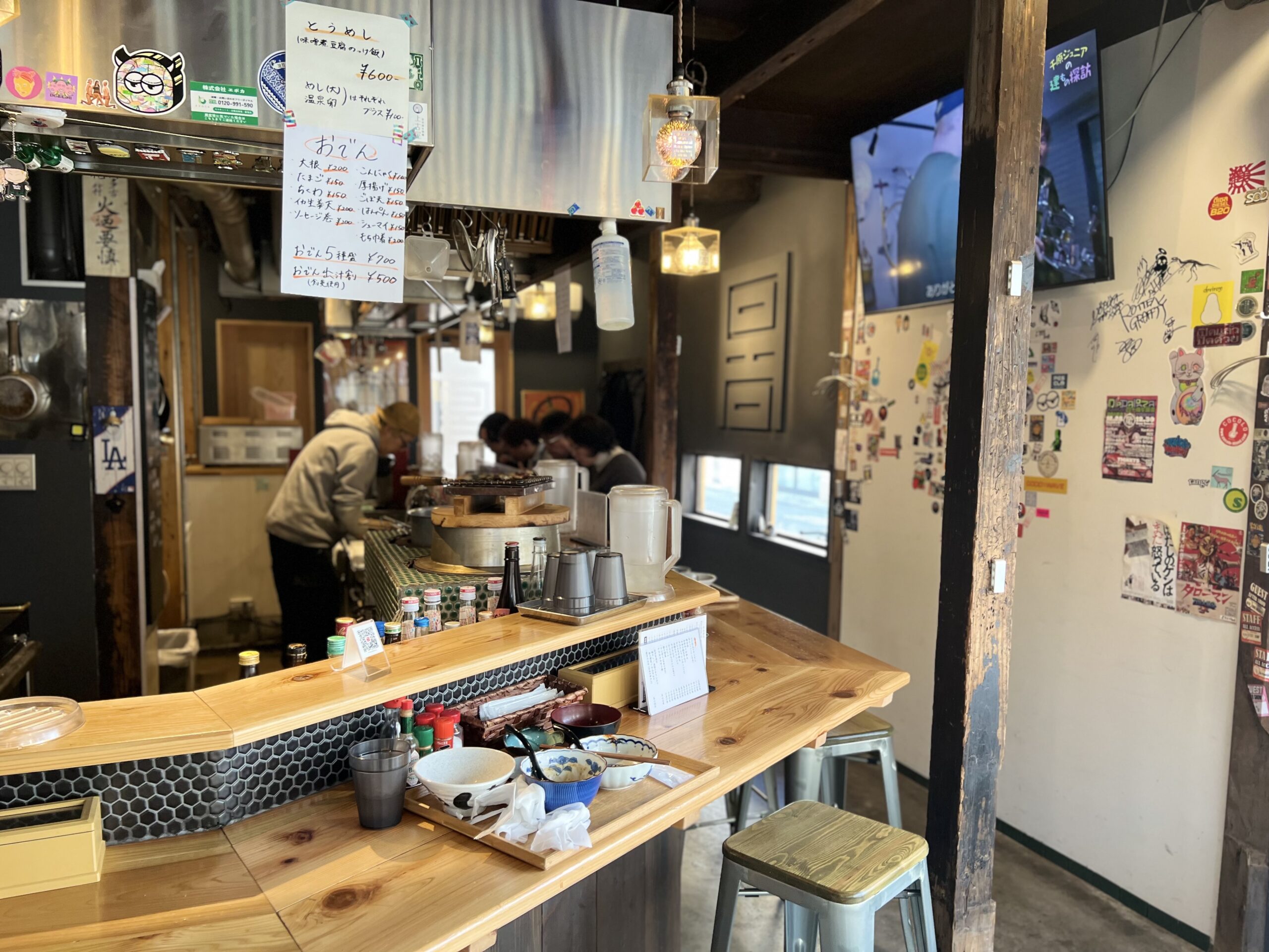 柱や内装がそのままに、店内に流れる音楽や映像は店主のセンスが光る。