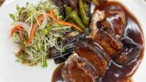 骨付きよだれ鶏。全く辛くない甘味のソースは15種類以上の野菜だけで作られています。