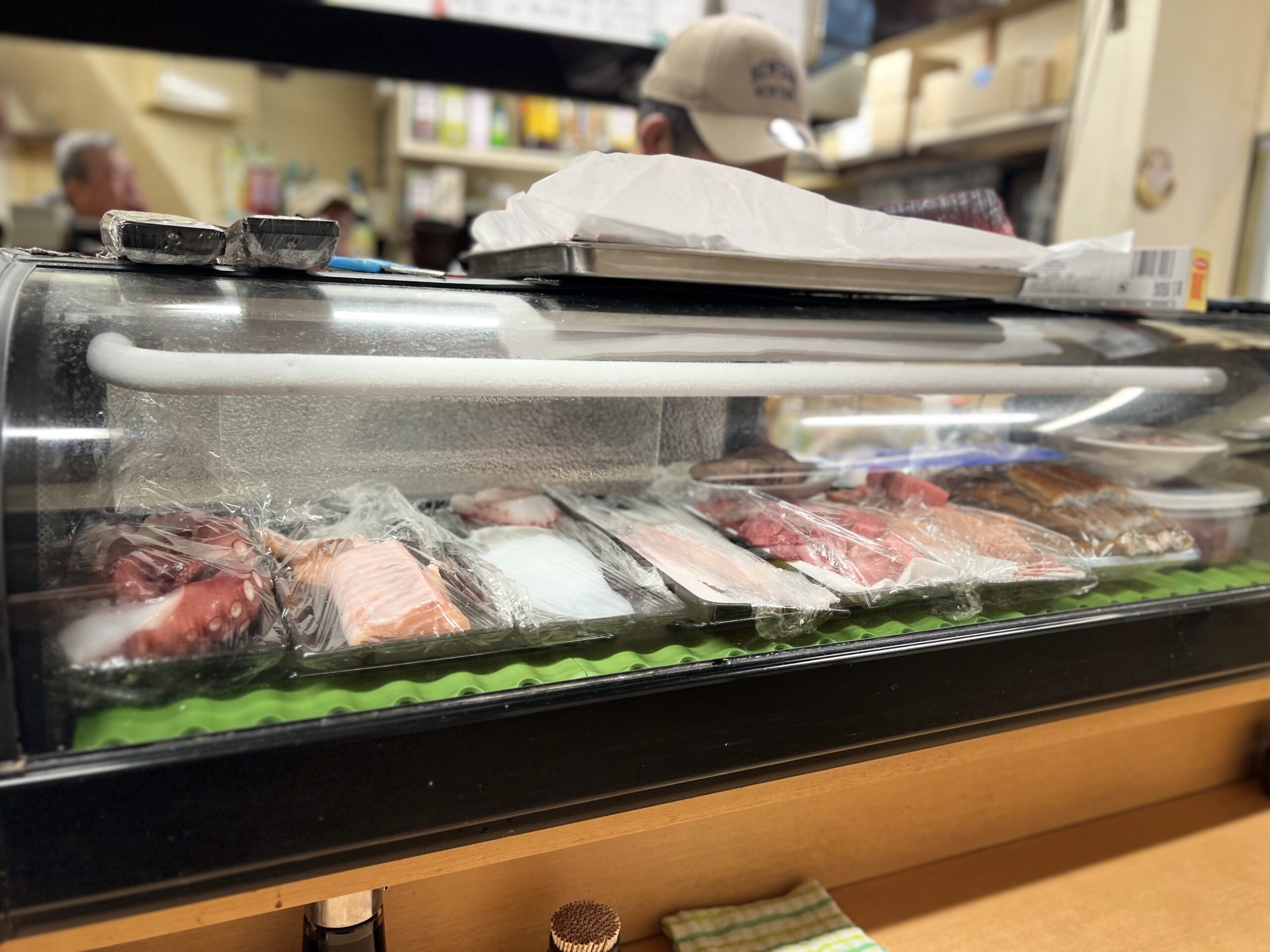ショーケースに入った造りを始め、天ぷら、揚げ物、逸品など目白押し。