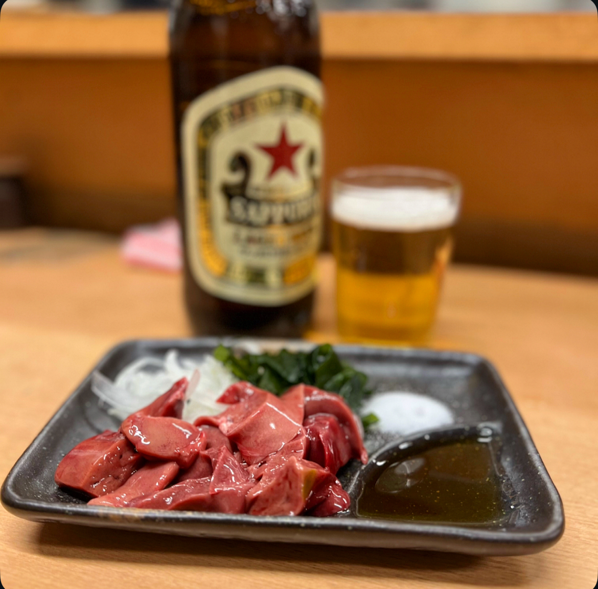 新鮮な鶏キモ造り550円。