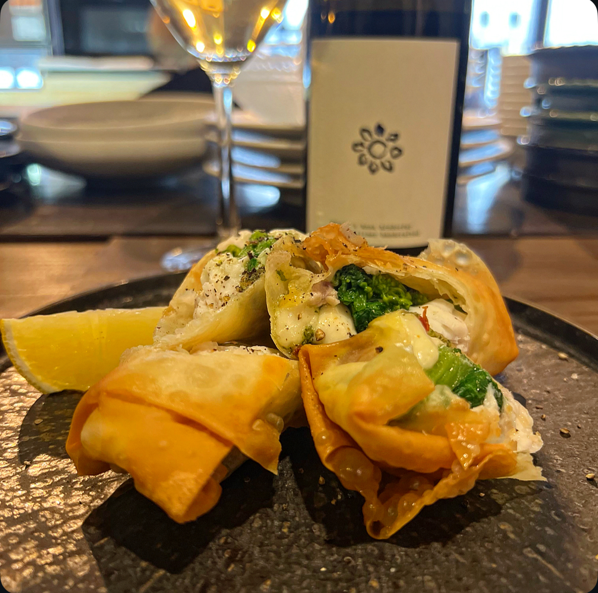 鯛、菜の花、モッツァレラチーズ春巻 880円