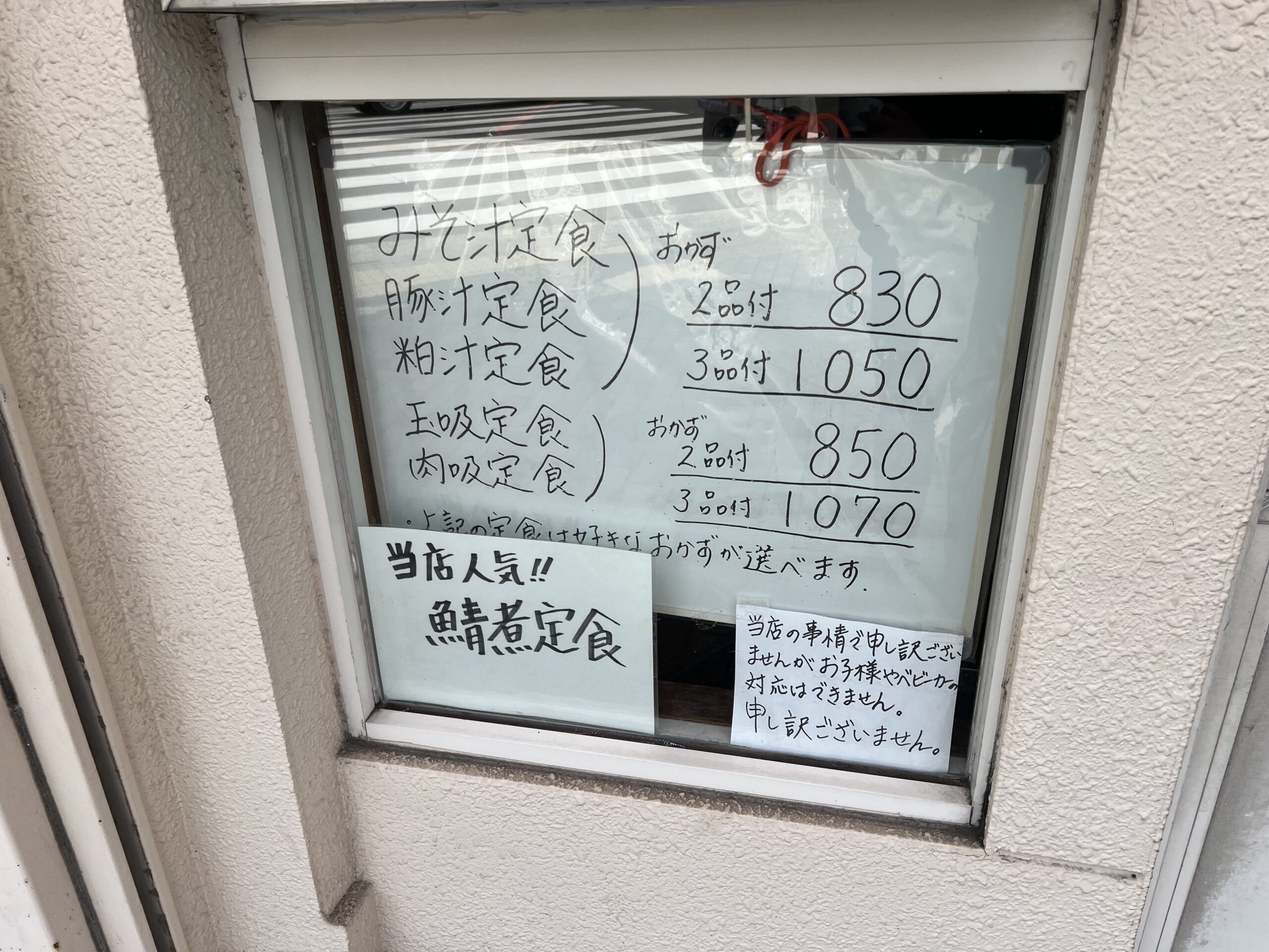 みそ汁、豚汁、冬は数汁。また20円アップで玉吸、肉吸も。