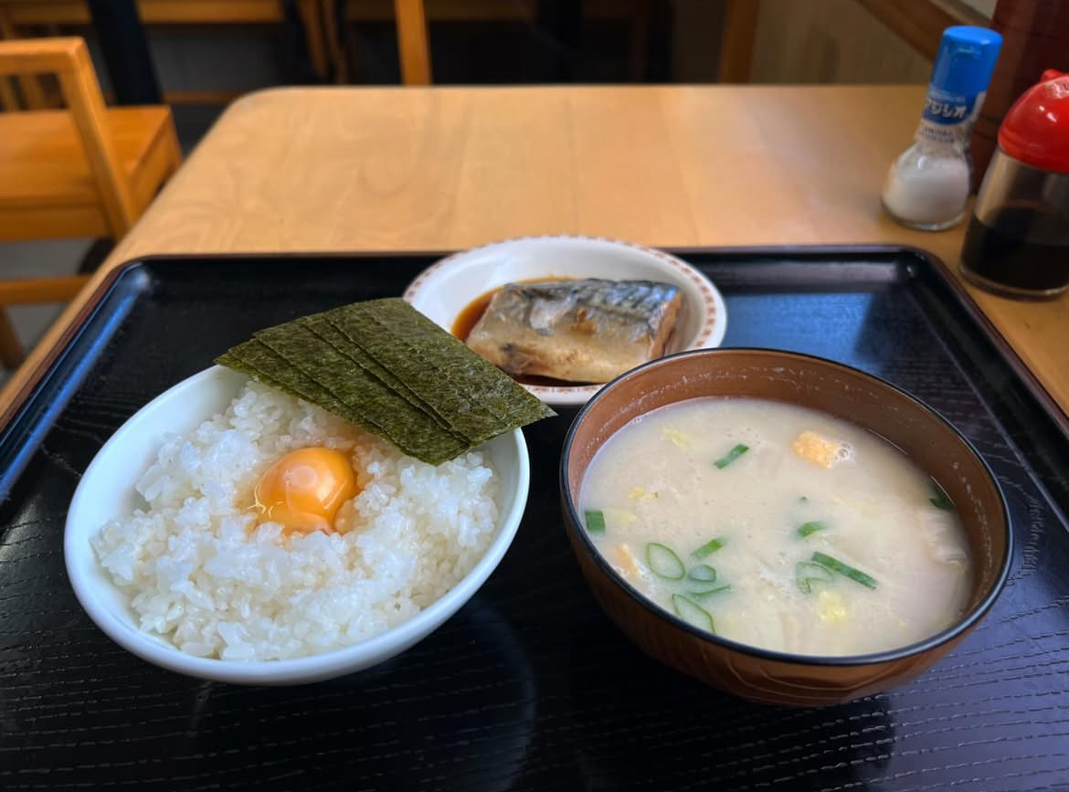 また朝6時~10時30分は朝食も対応。場所柄夜勤明けのナースさんが多いのだとか。ご飯におかず1品、海苔、生卵orいり玉子、汁物はみそ汁、豚汁、粕汁の中から好きなものを選ぶことができますよ。値段は生卵(740円)、いり玉子(760円)
