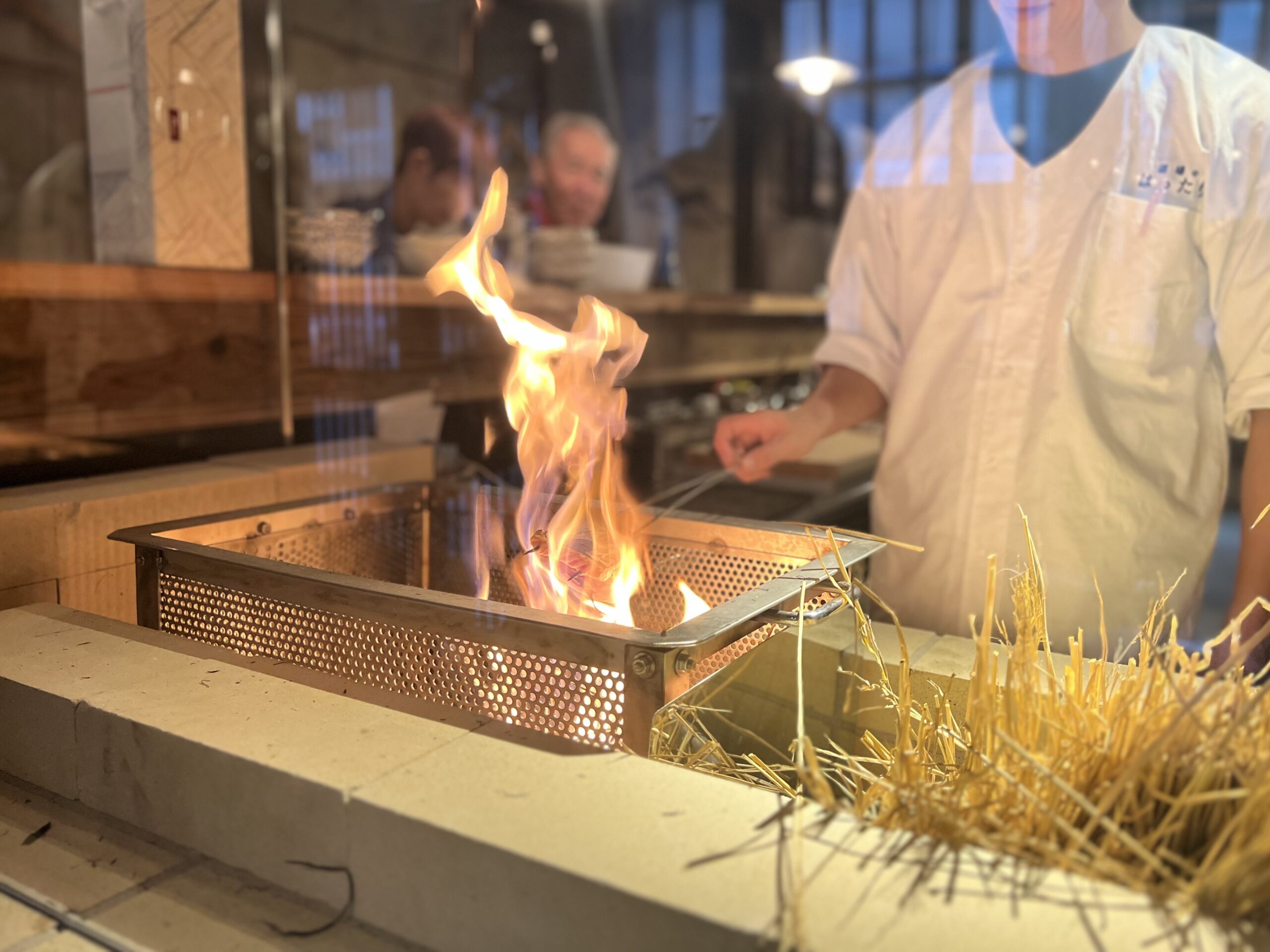 藁焼き鰹たたきはちゃぶ台前の特製焼き台で豪快に焼き上げてくれます。