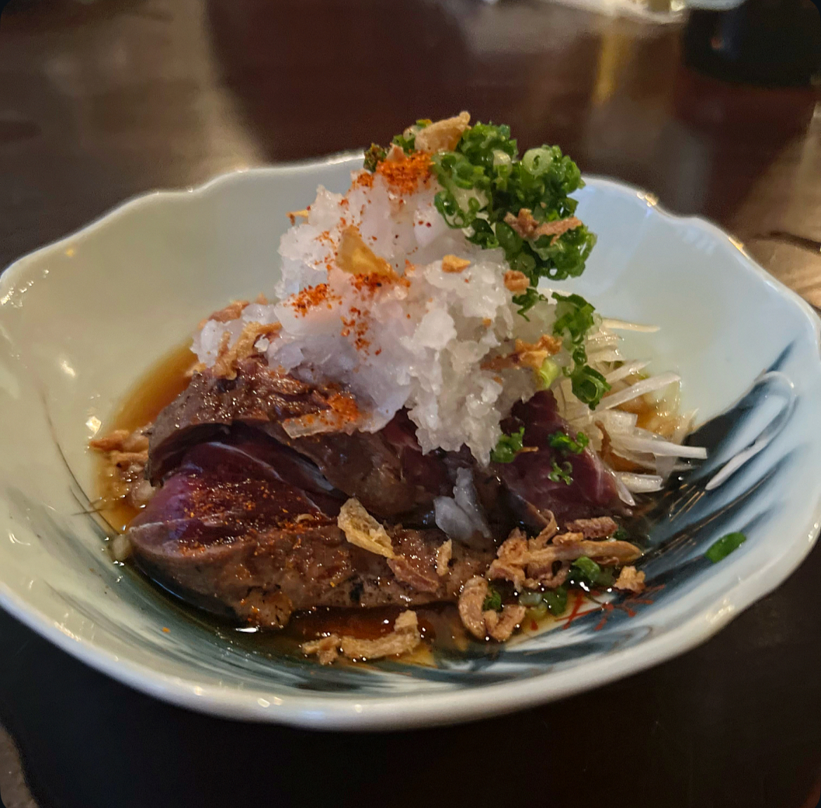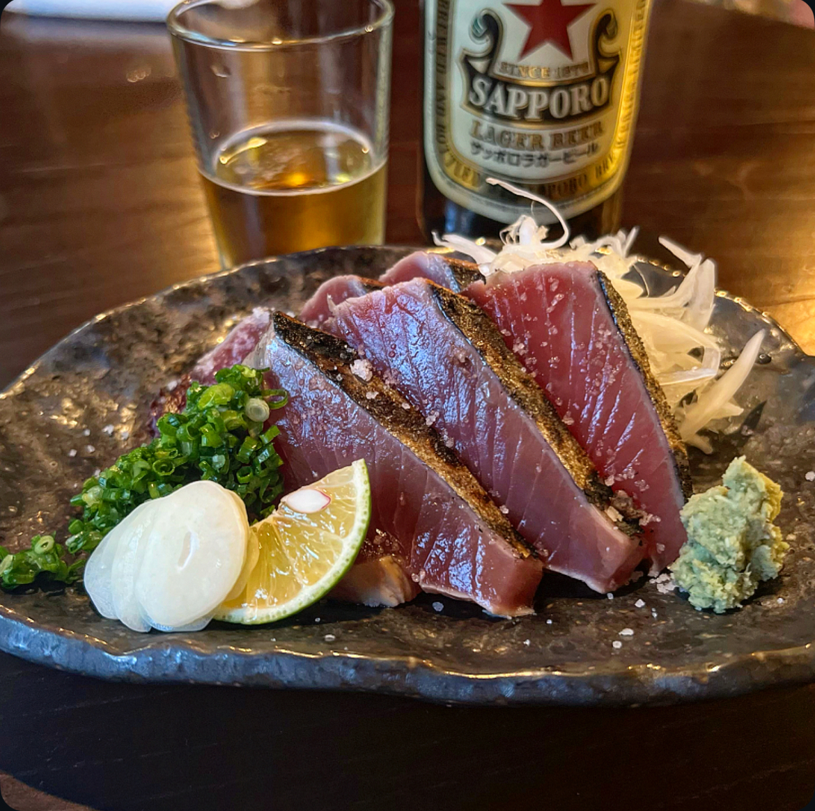 目の前で藁焼きにした出来たての鰹はぷりっぷり。