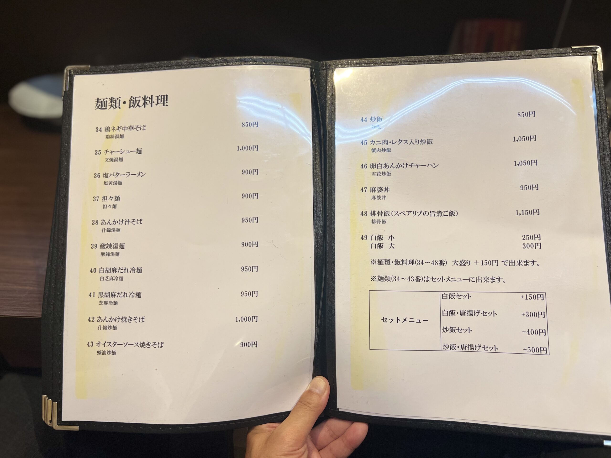 ランチメニューはあんかけ焼きそばや麻婆丼のセットに中華そばや担々麺、炒飯などがズラリ。中でも名物とも言われる卵白あんかけ炒飯は唯一無二の存在です。