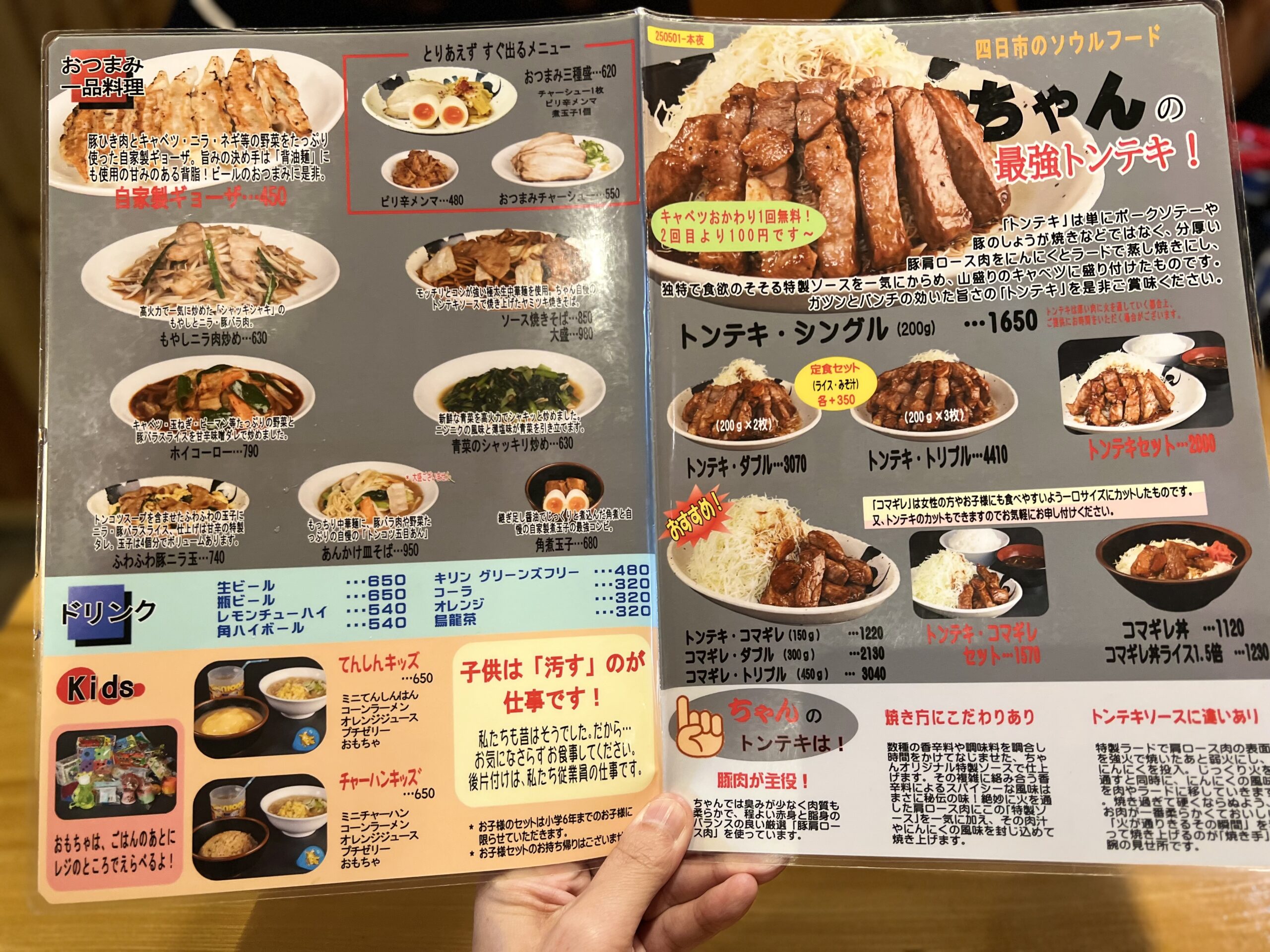 三重四日市のソウルフード、トンテキを名物に、ラーメン、チャーハン、サイドメニューと人気を醸す。
