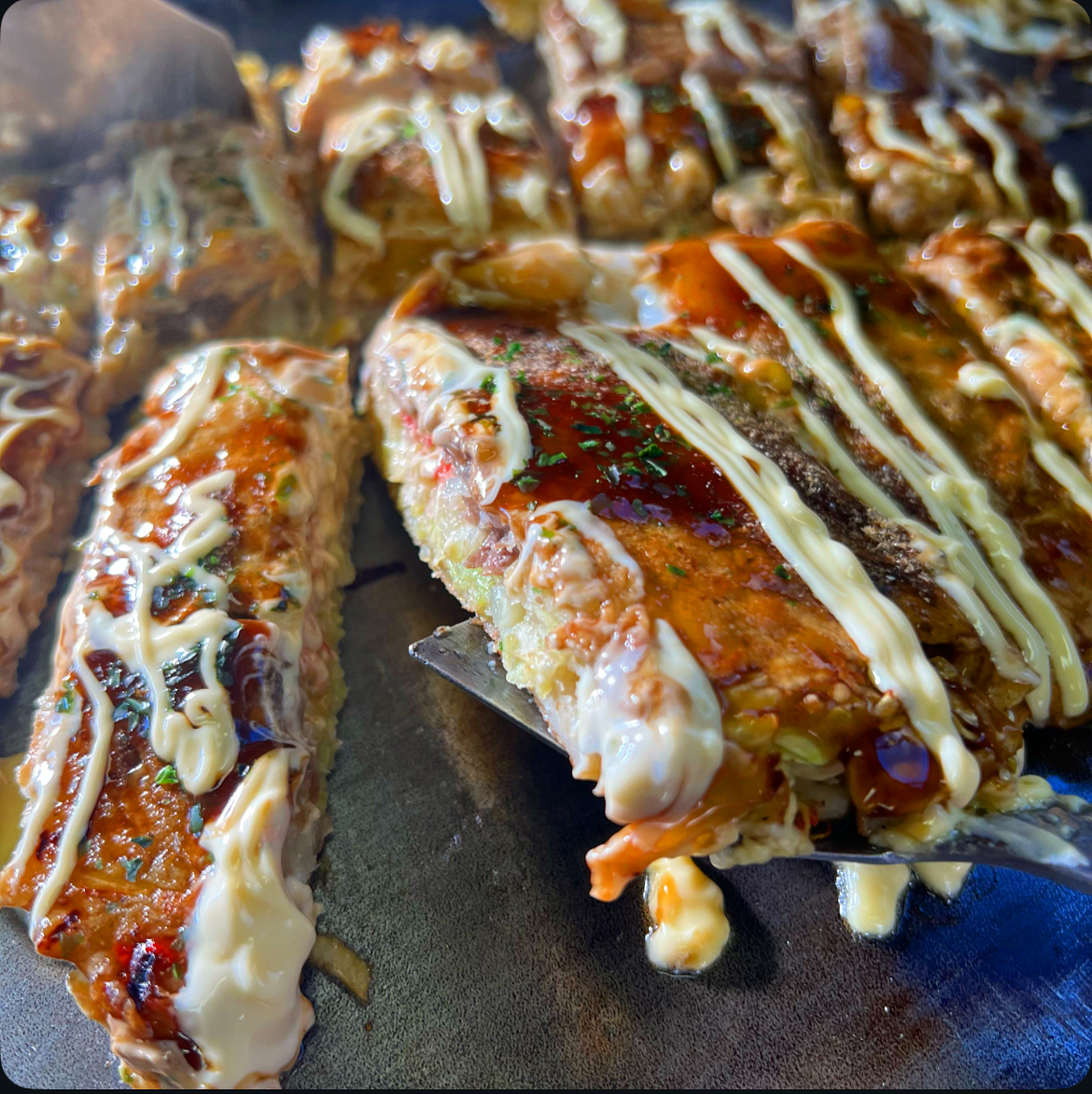 定番のべた焼にねぎ焼き、焼きそばなど、出汁の効いたソースと共に味わいます。