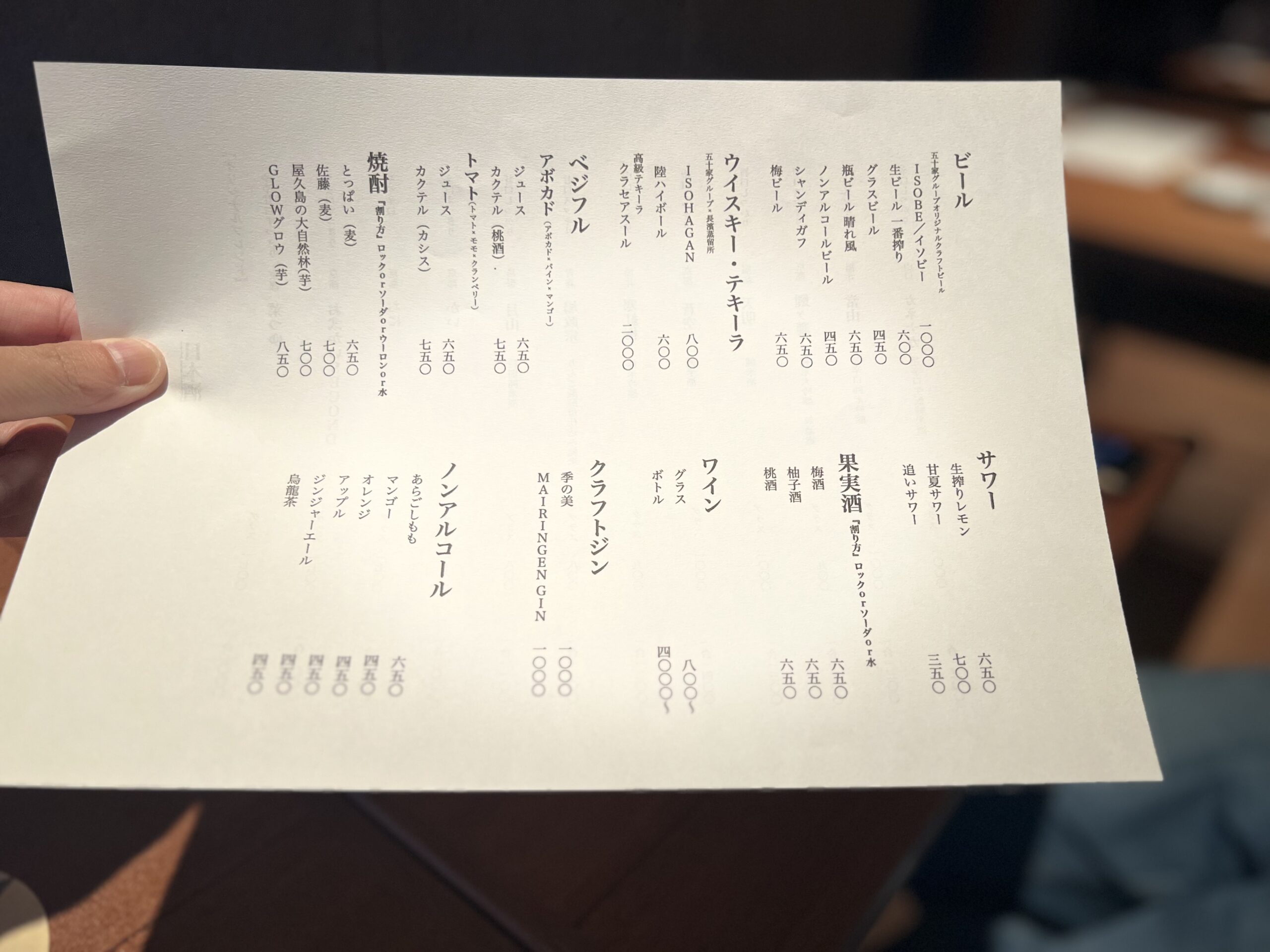 ドリンクは定番の酒に、野菜のベジフルカクテルに五十家オリジナルブレンドハイボールに、オリジナルブレンド日本酒も。