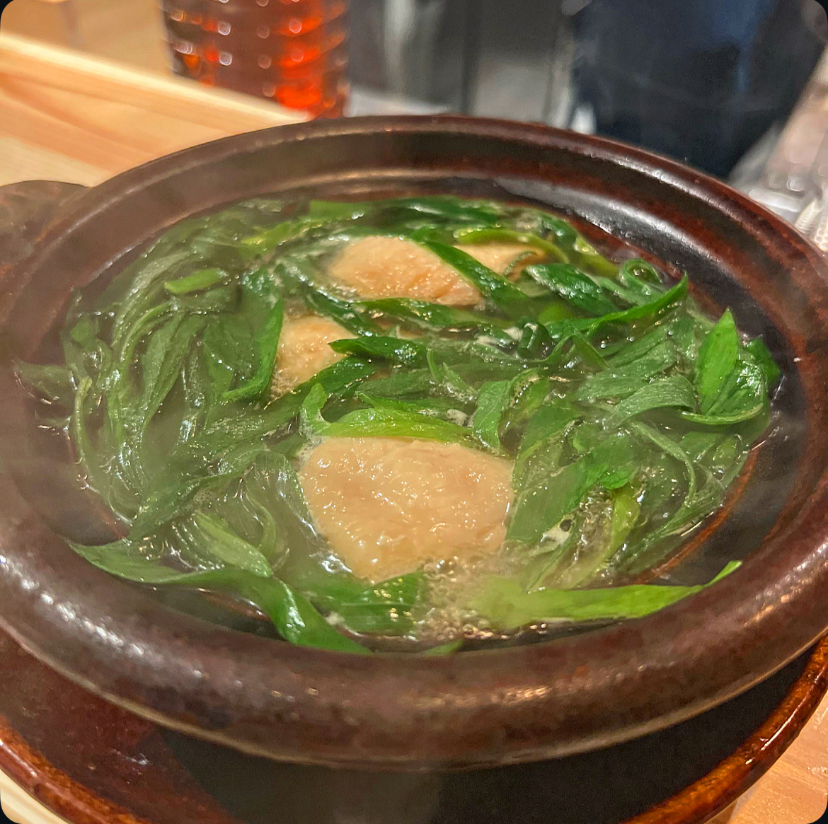 出汁の効いたぐつぐつ鍋で登場。
