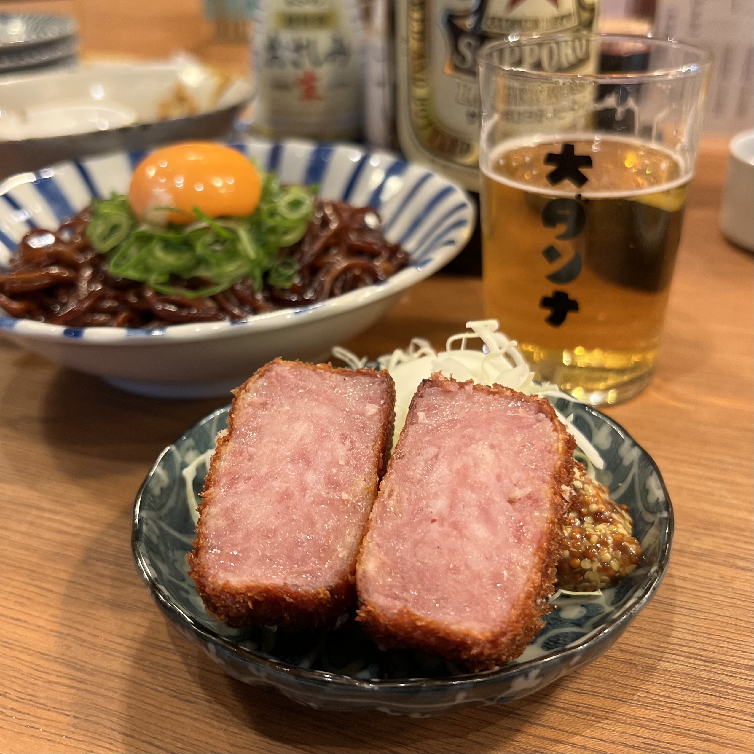 肉厚なハムカツ。これぞ酒場のアテ。
