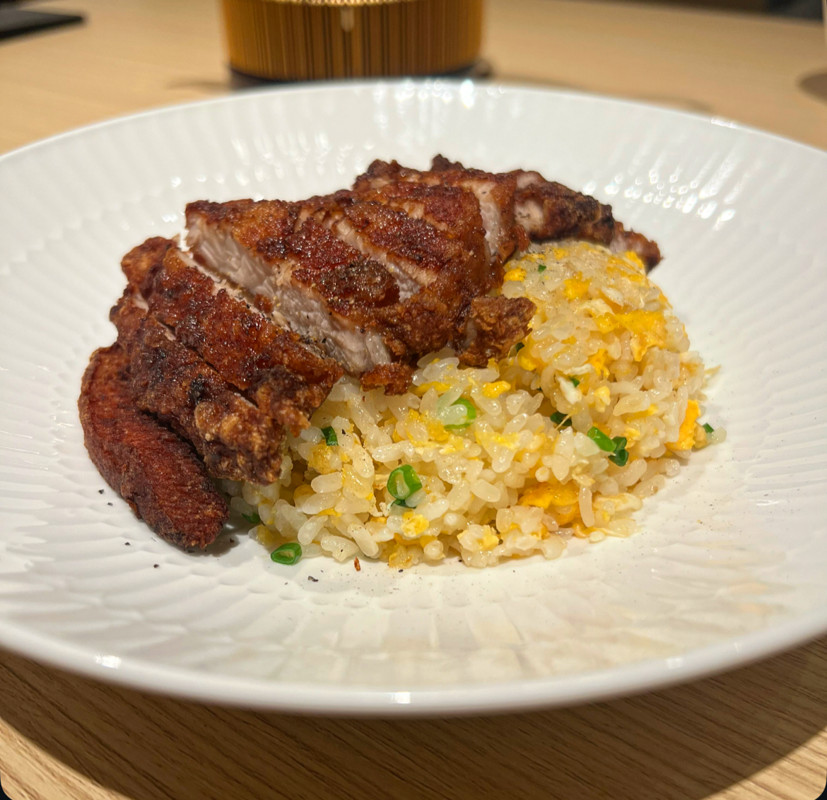 カリッとした豚カツに安定の優しい味わいのチャーハン。