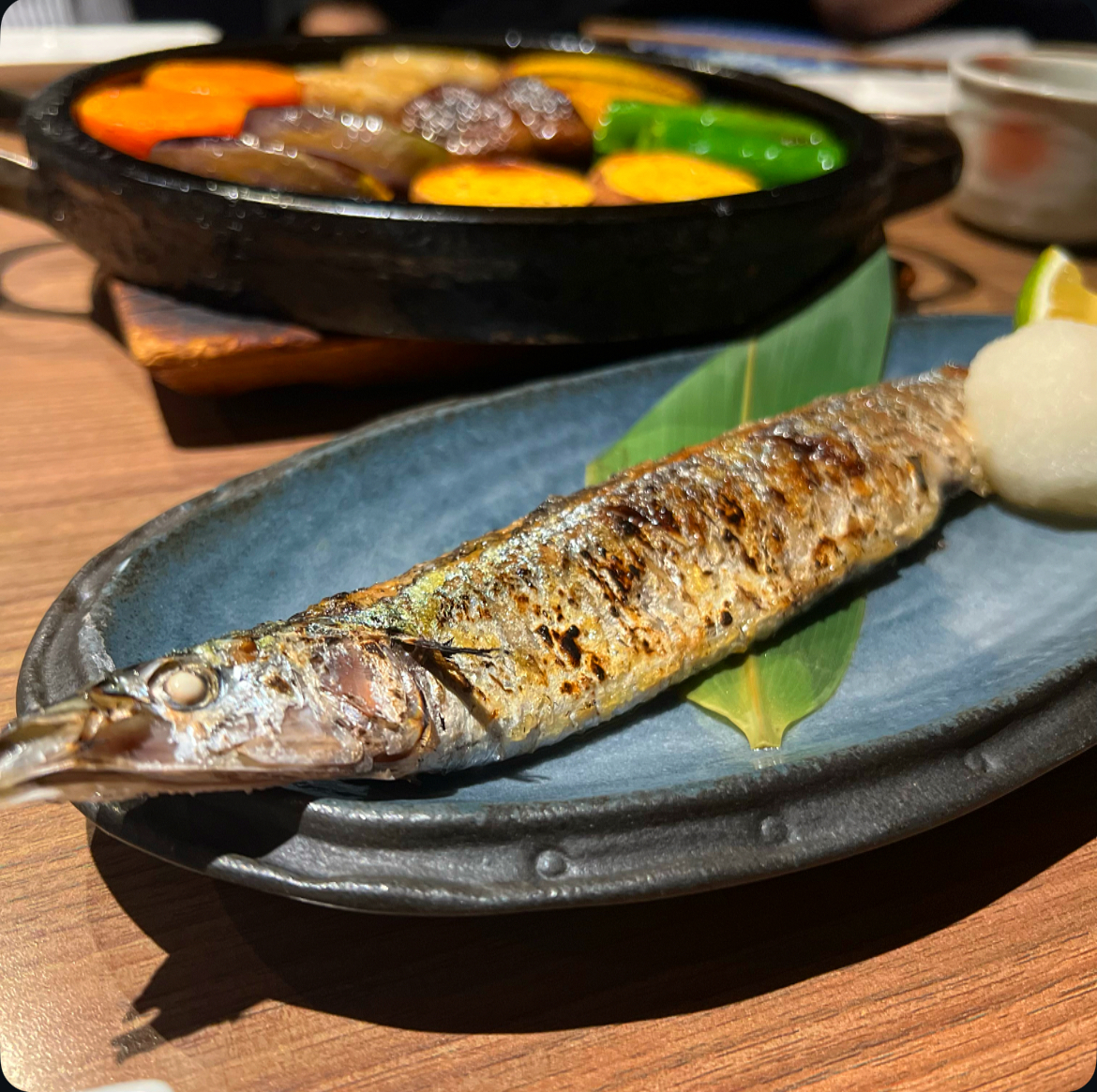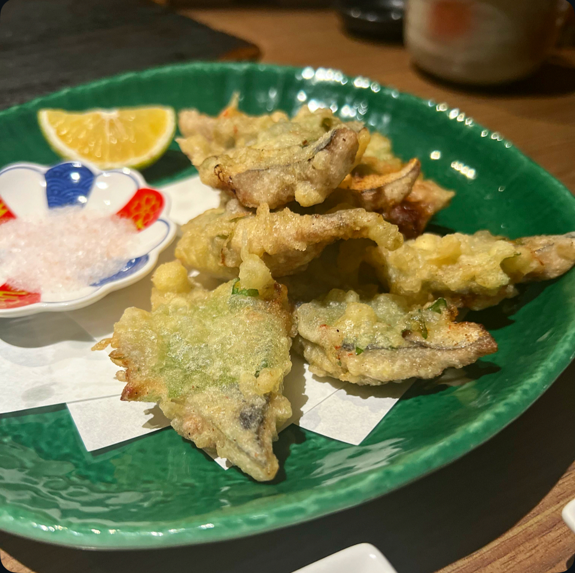 秋刀魚の天ぷら、紫蘇と梅肉でさっぱり。
