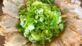 青菜ナムル、せんまい刺し、ハチノスポン酢、タンハム