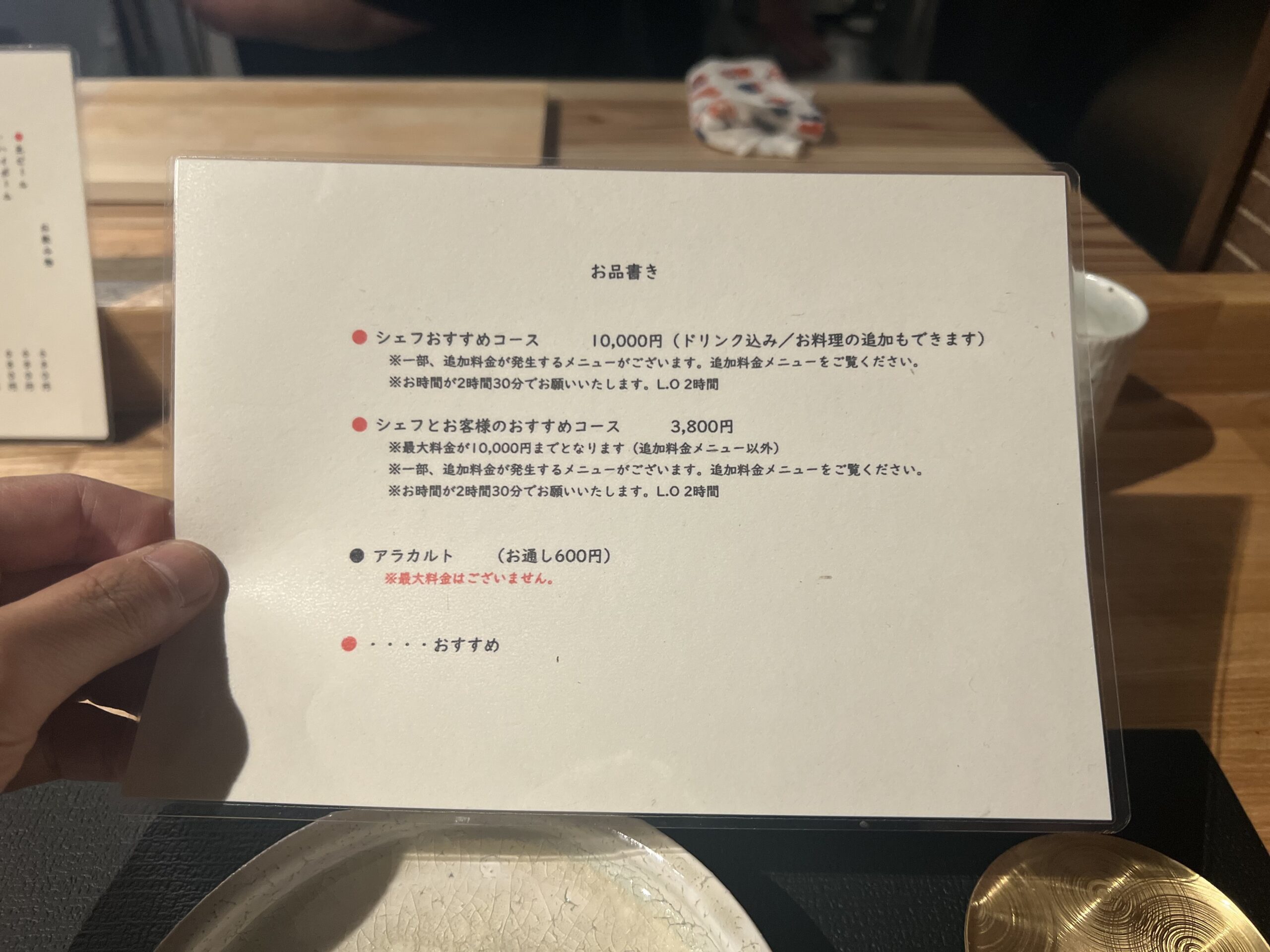 この日は10,000円コースを。