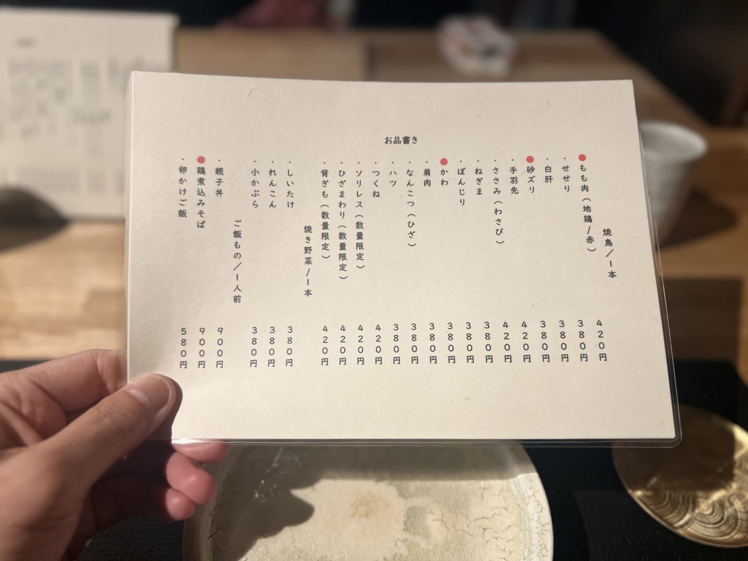 焼鳥は1本380円~。コースはドリンク込み、追加含め10,000円。