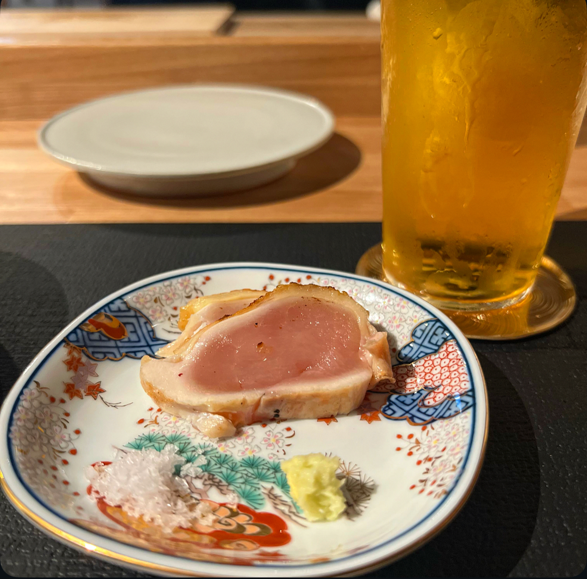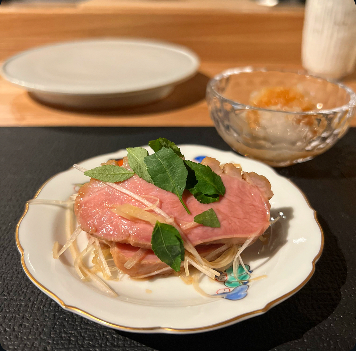 続いては鴨ロース、濃厚な鴨の旨味とネギがいいアクセント。