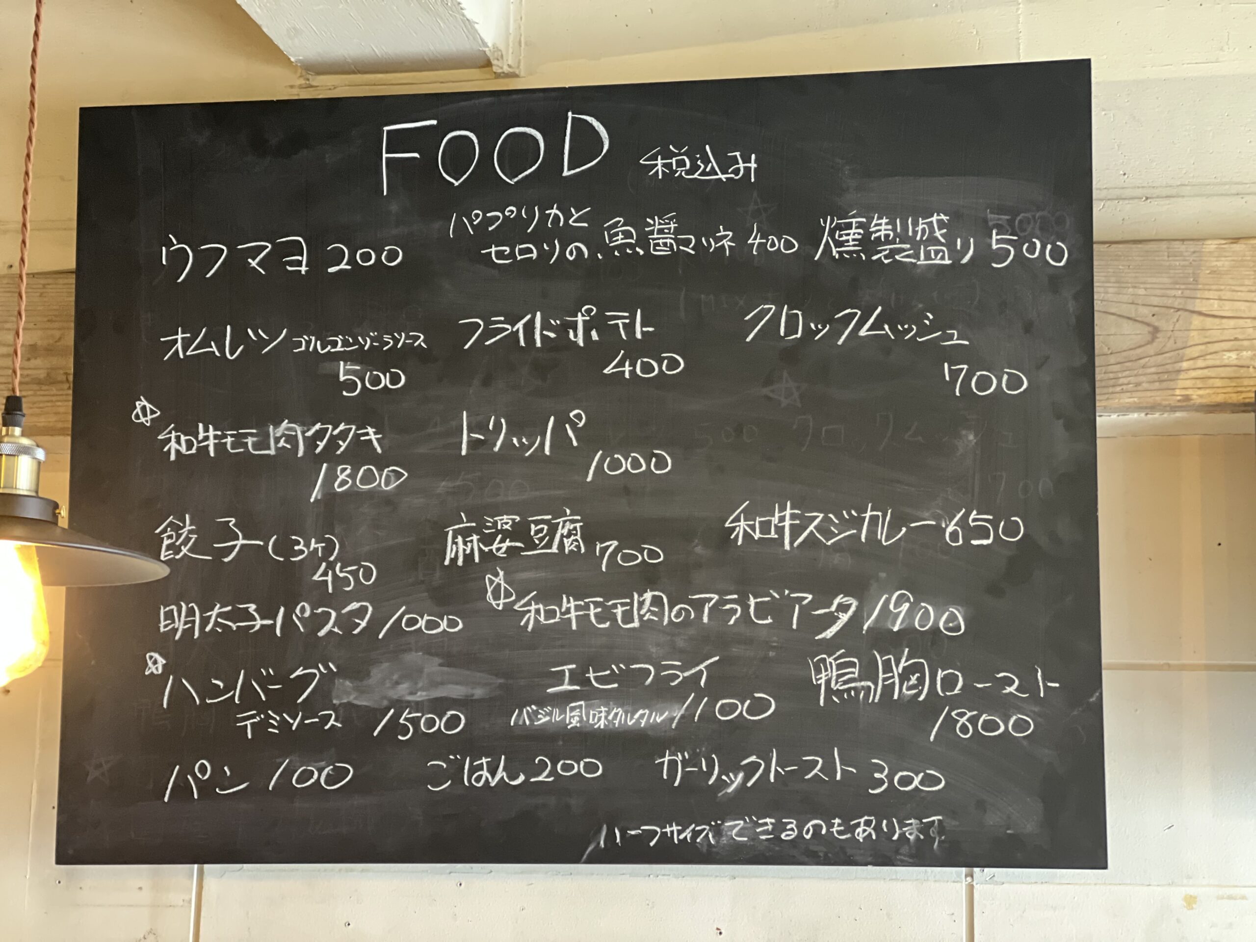 メニューは自家製アテからステーキ、カレー、ハンバーグに麻婆豆腐、餃子など洋風多国籍料理がズラリ。