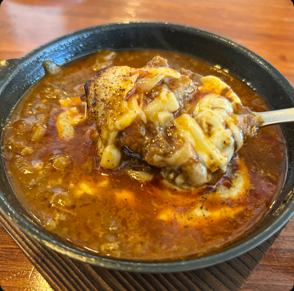 自家製デミグラスは赤ワインとフォンドボー、香味野菜で長時間煮込んでいます。