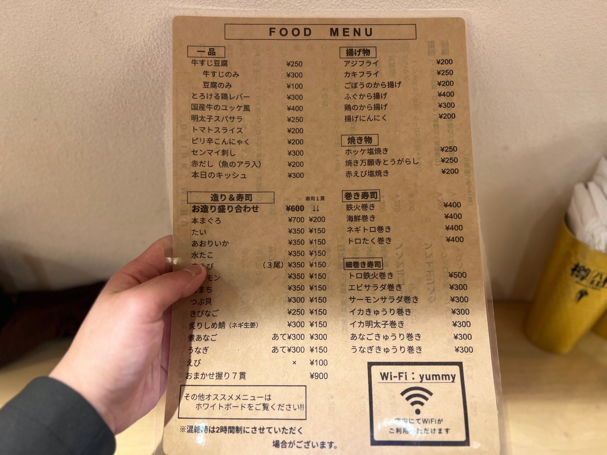一品、寿司、刺身、揚げ物、焼き物、巻き物とズラリ。