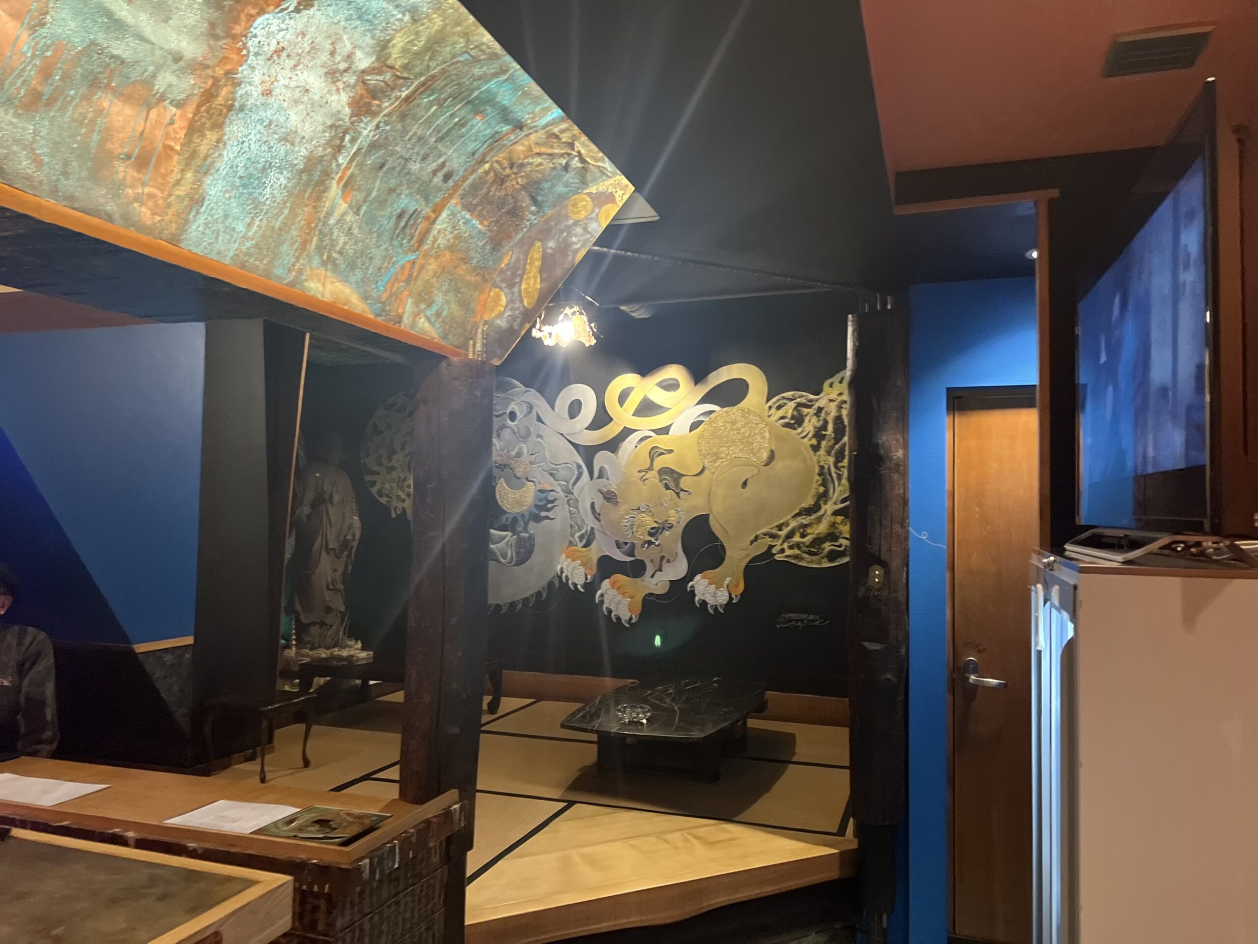 壁画の龍と虎に引き込まれる。