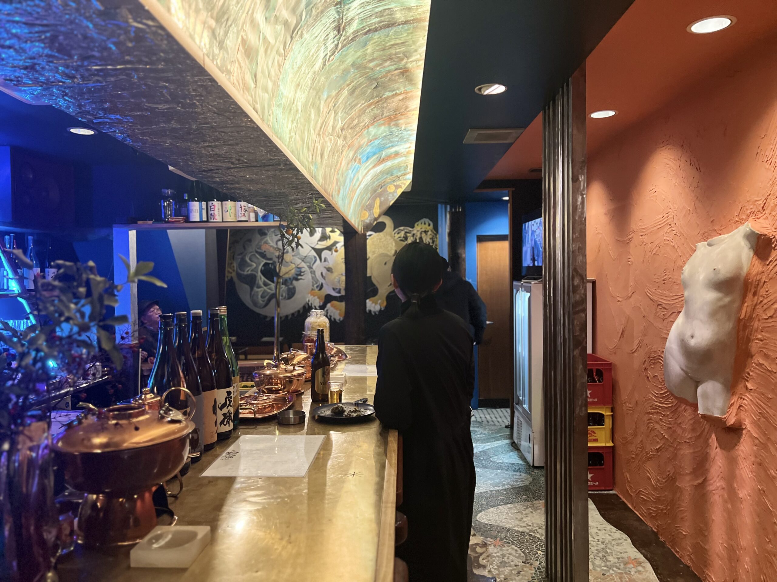 店内はアーティスティックな手作り空間、立ち飲み、カウンター、座敷と使い勝手抜群。豊富なお酒にスパイスを効かせた逸品メニューが自慢。