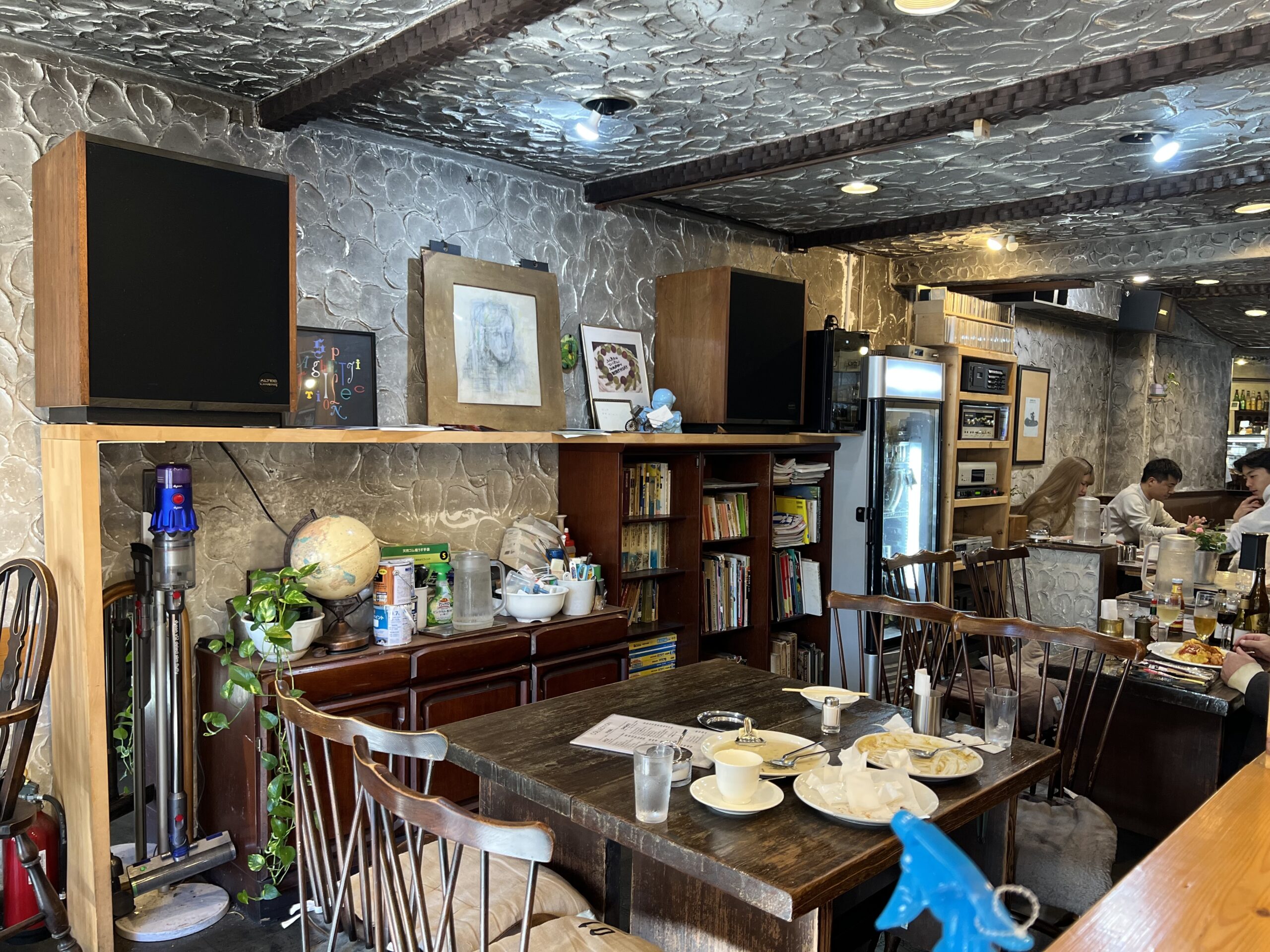 店内はレトロな雰囲気。大きく2つのエリアに分かれており、少しうす暗い照明と重厚感ある家具や、趣あるインテリア。もう1つは大きな窓から入る日差しが明るく、広々とした雰囲気。全35席ほどの空間です。
