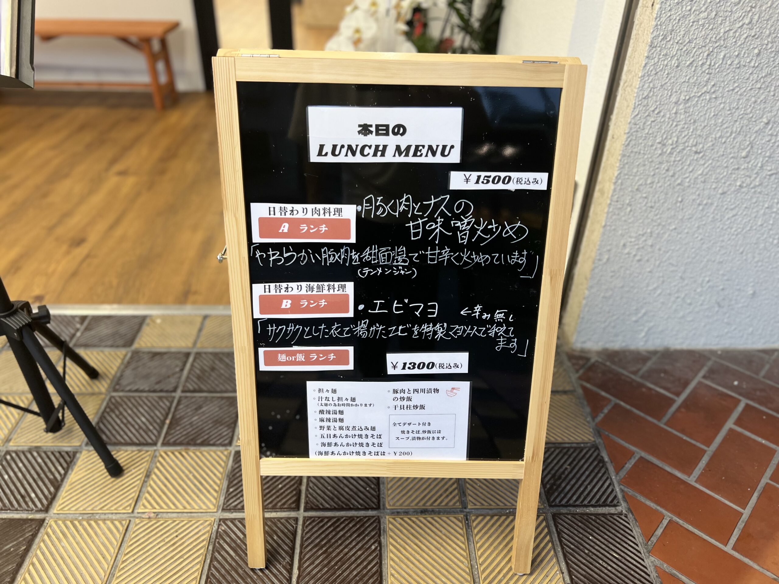 ランチは日替わりのABランチが1,500円、麺or飯が1,300円。