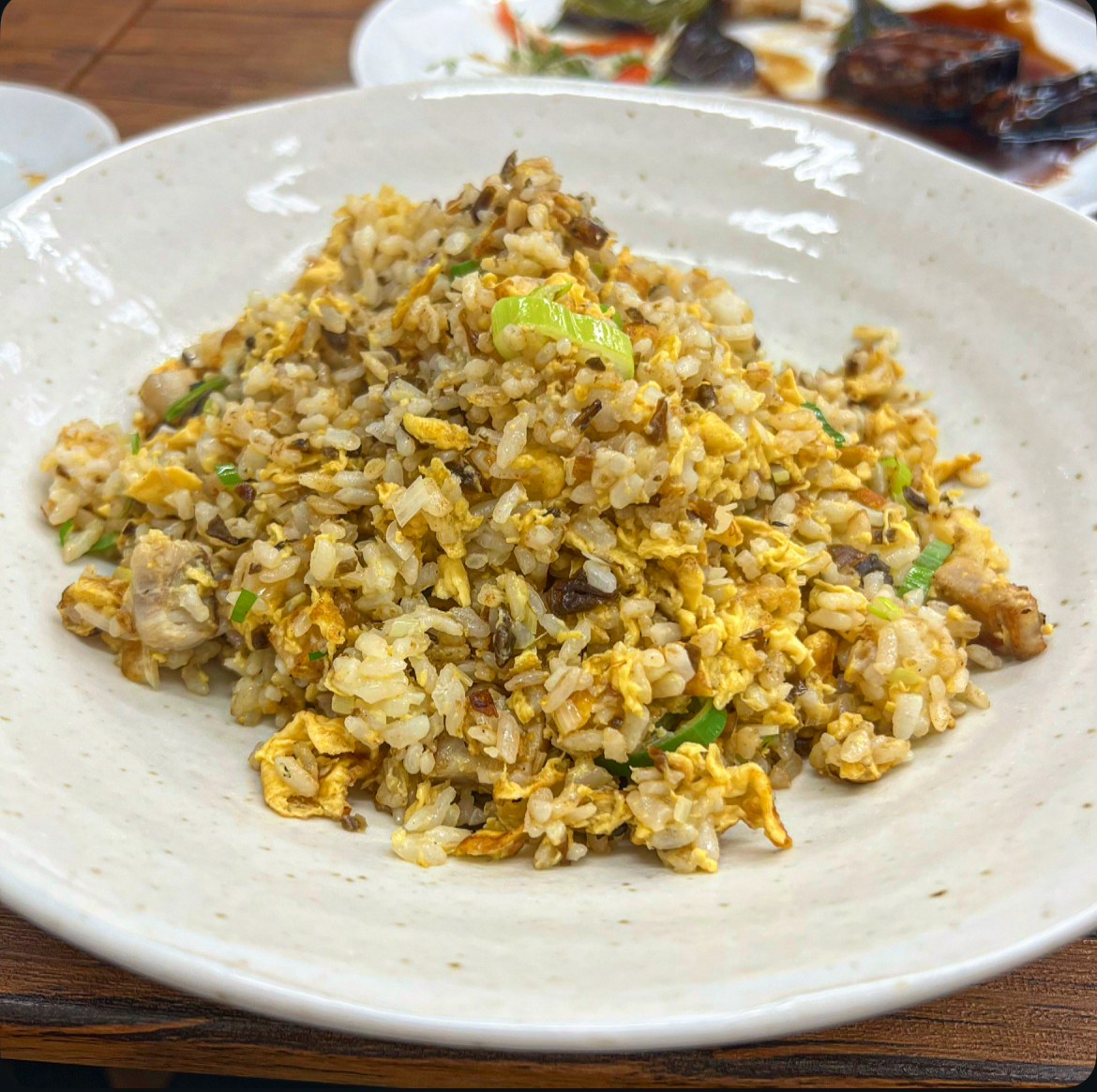 パラパラとした炒飯にゴロっと角切り豚肉に四川泡菜を細かく刻んで入っています。