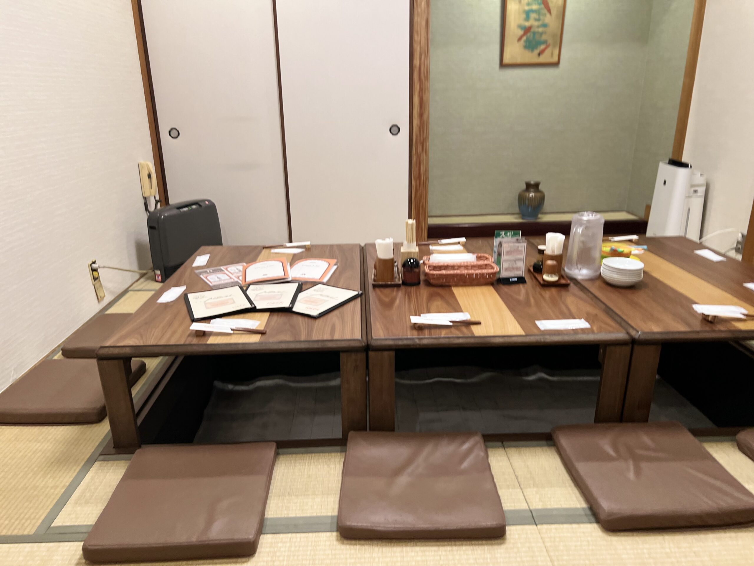 店内はコの字カウンターにテーブル席が30席ほど、そして最大12名完備の座敷もありますよ。グループや子連れなどにもぴったり。