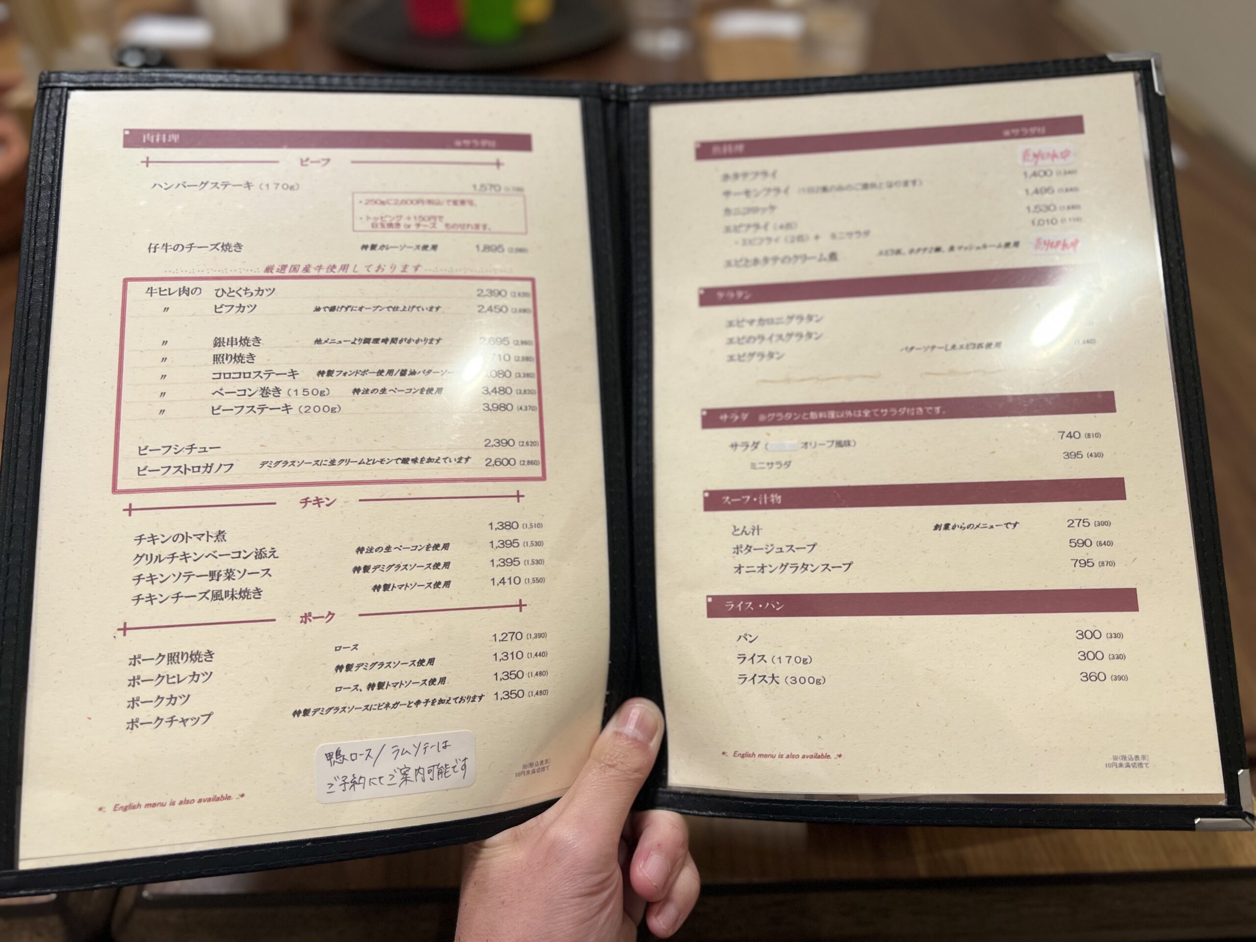 メニューは本格洋食がズラリ。