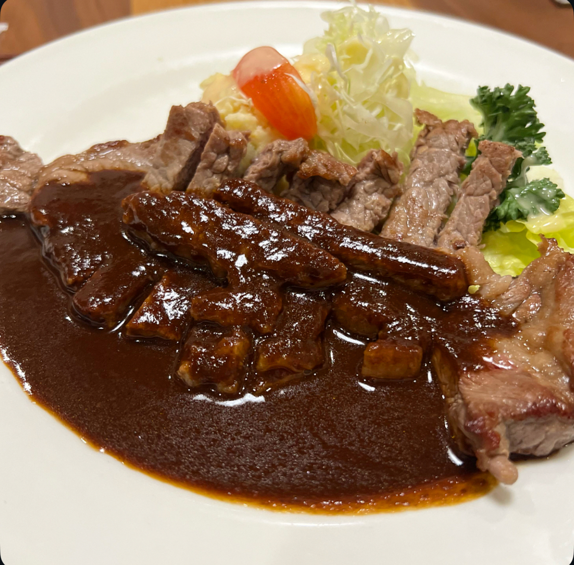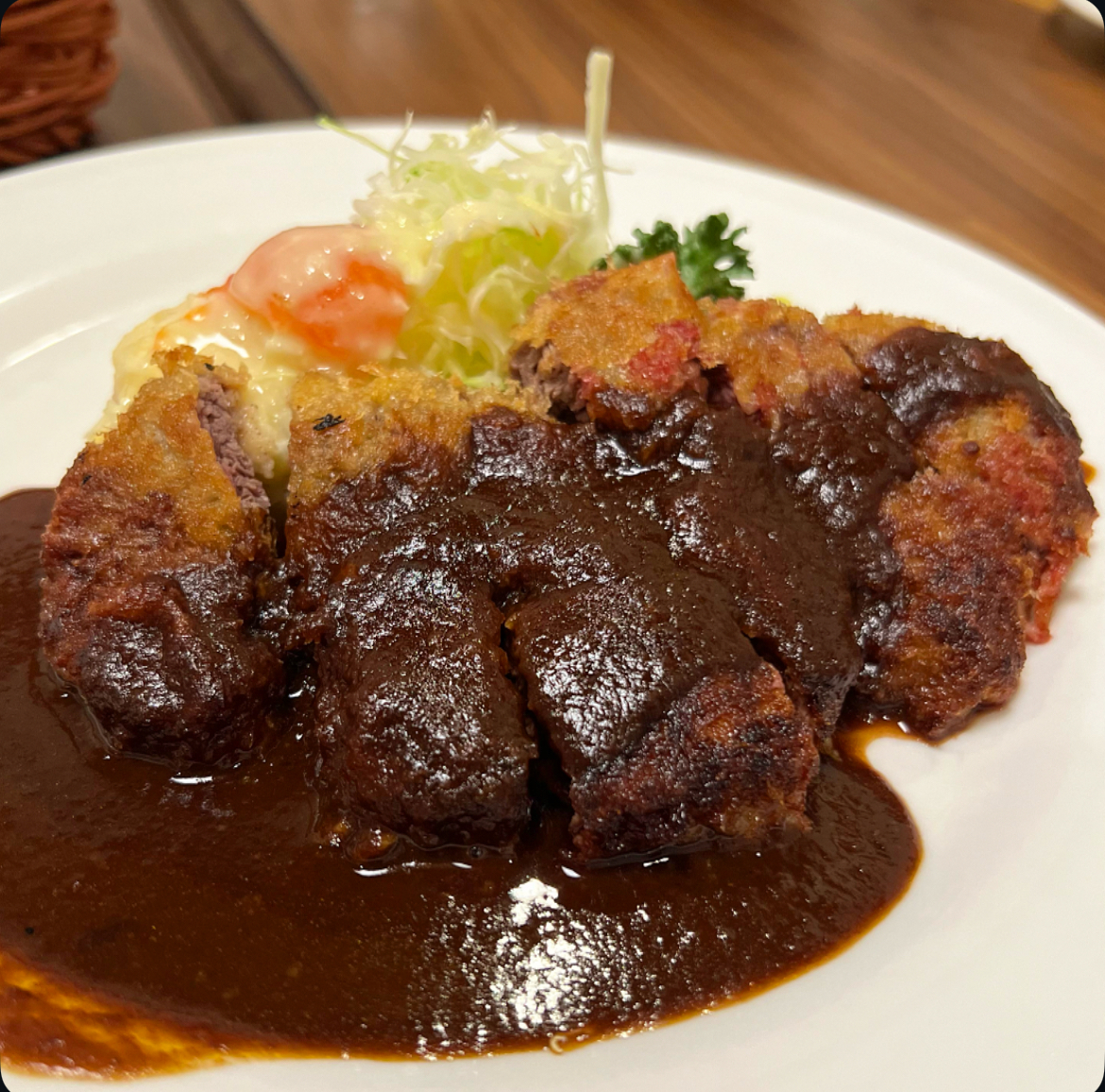 深みのある色艶のドミグラスソースが美しい。