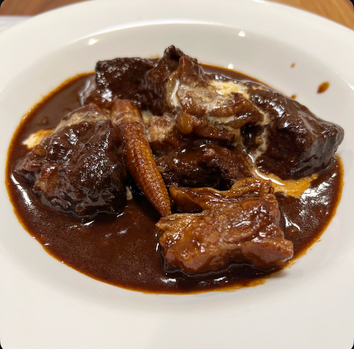 京都・中嶋農園の玉ねぎを使用し、牛スネ肉と一緒に煮込むことで、牛肉の柔らかさとコクがしっかりと感じられる味わいに仕上がっている。