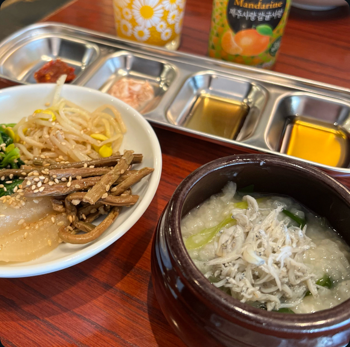まずは季節のおかゆ、ナムル盛り合わせ。