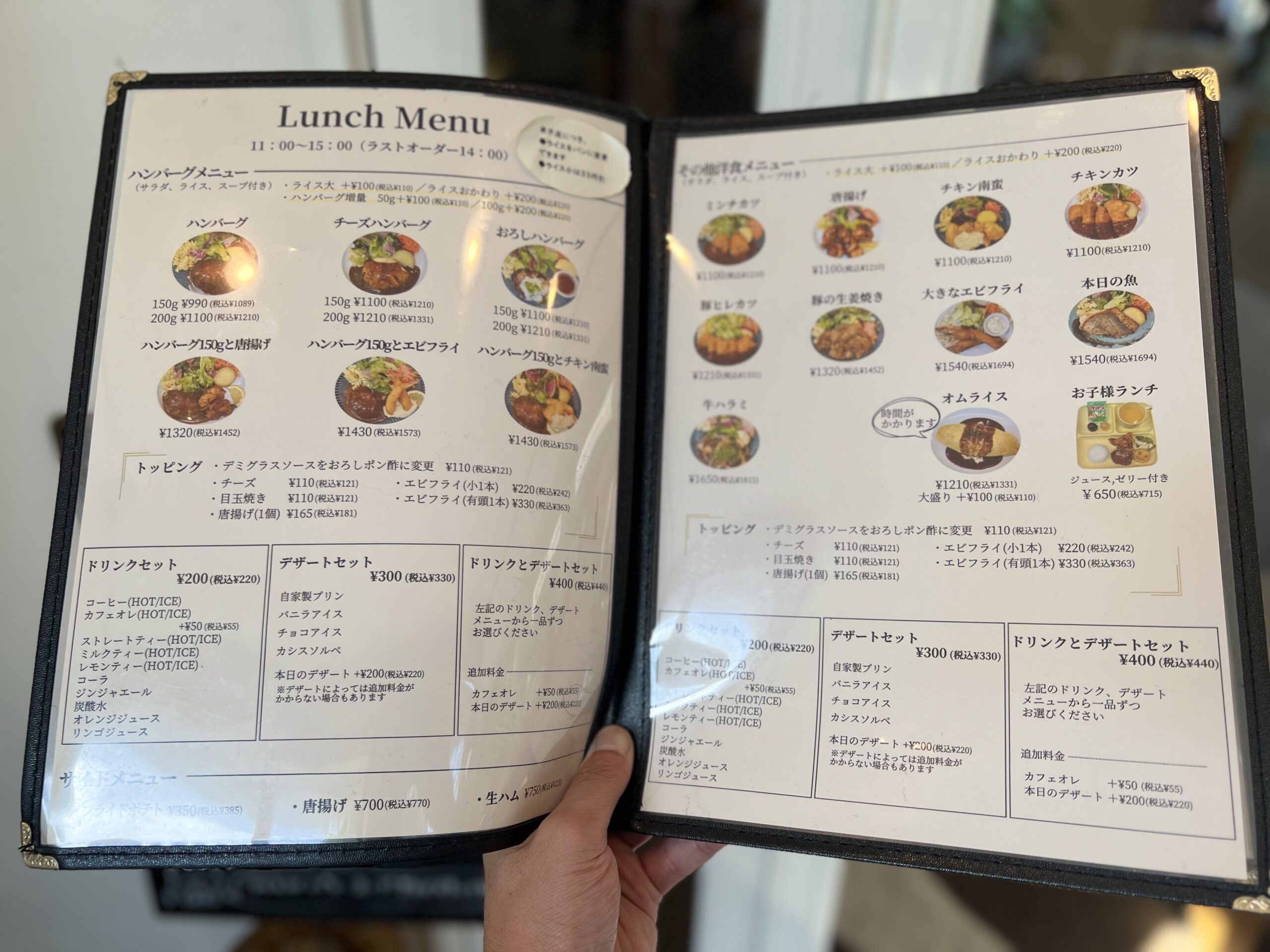 メニューはハンバーグに揚げ物やオムライスなど各種洋食。