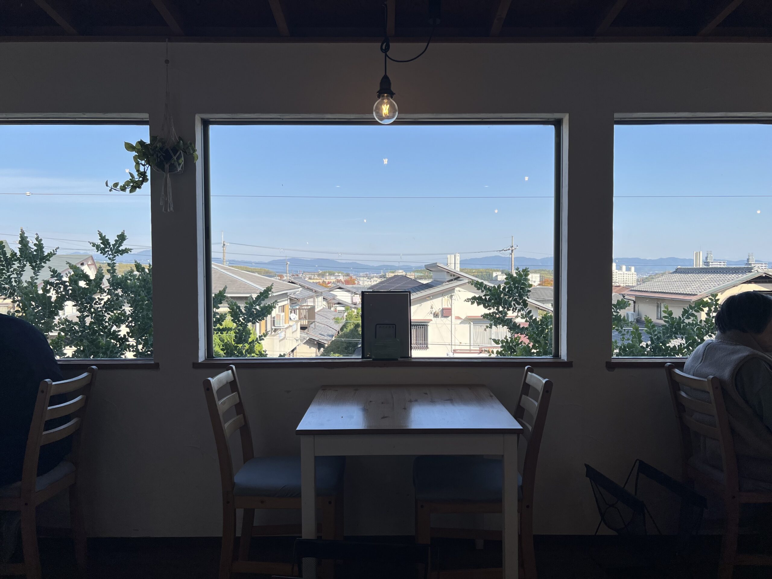 明るい光が差し込む店内からは洛西の街並みが見渡せますよ。