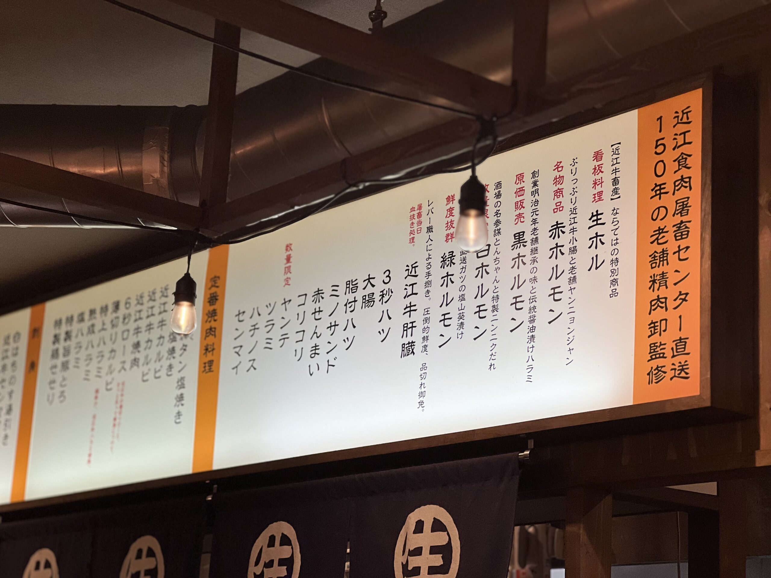 新鮮な近江牛の赤身とホルモン、そして逸品や〆まで楽しめる焼肉処です。