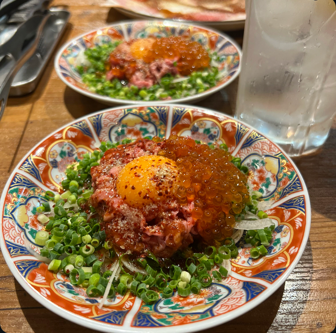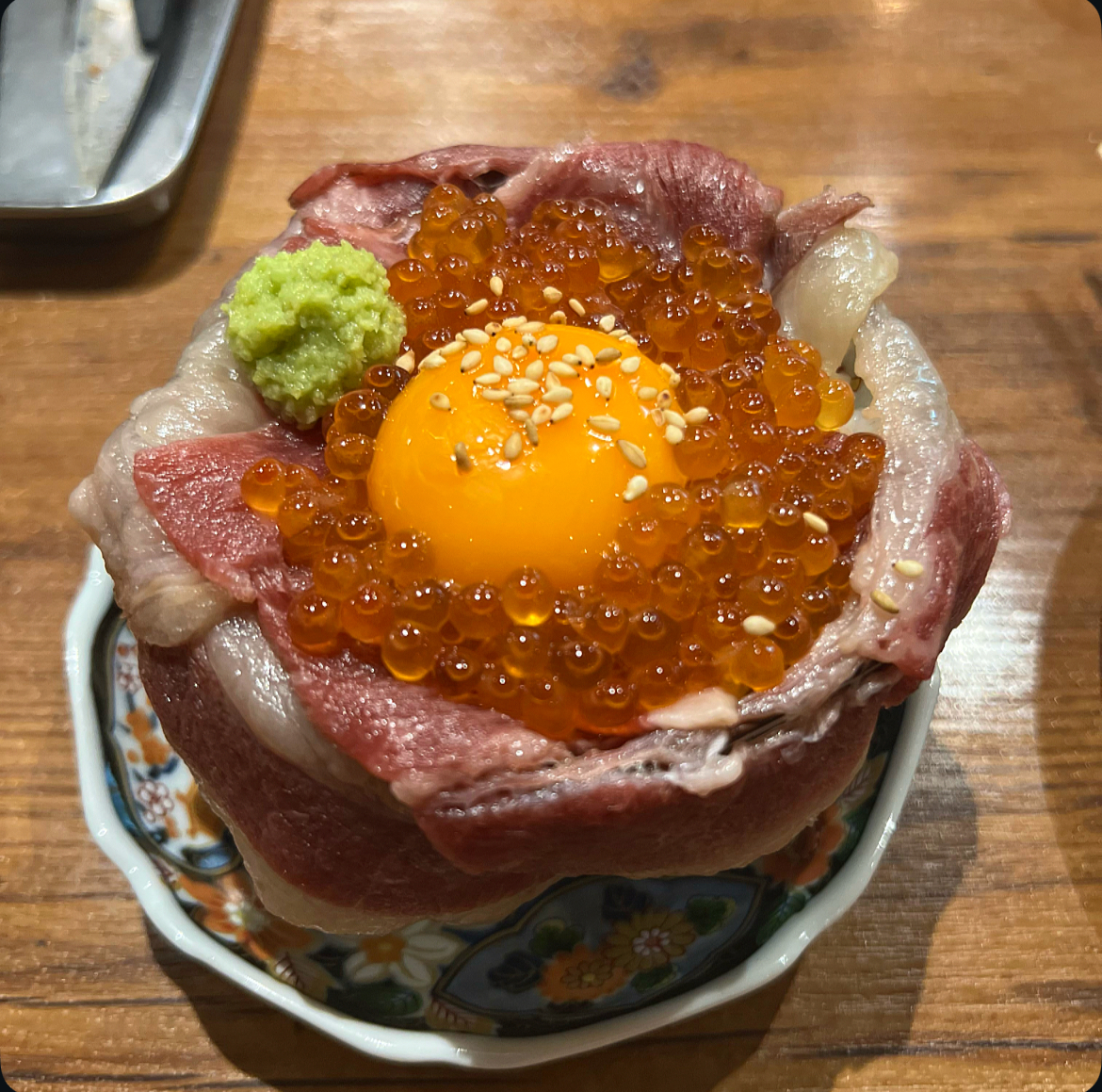 炙った牛にいくらと卵黄、ご飯が一堂に。