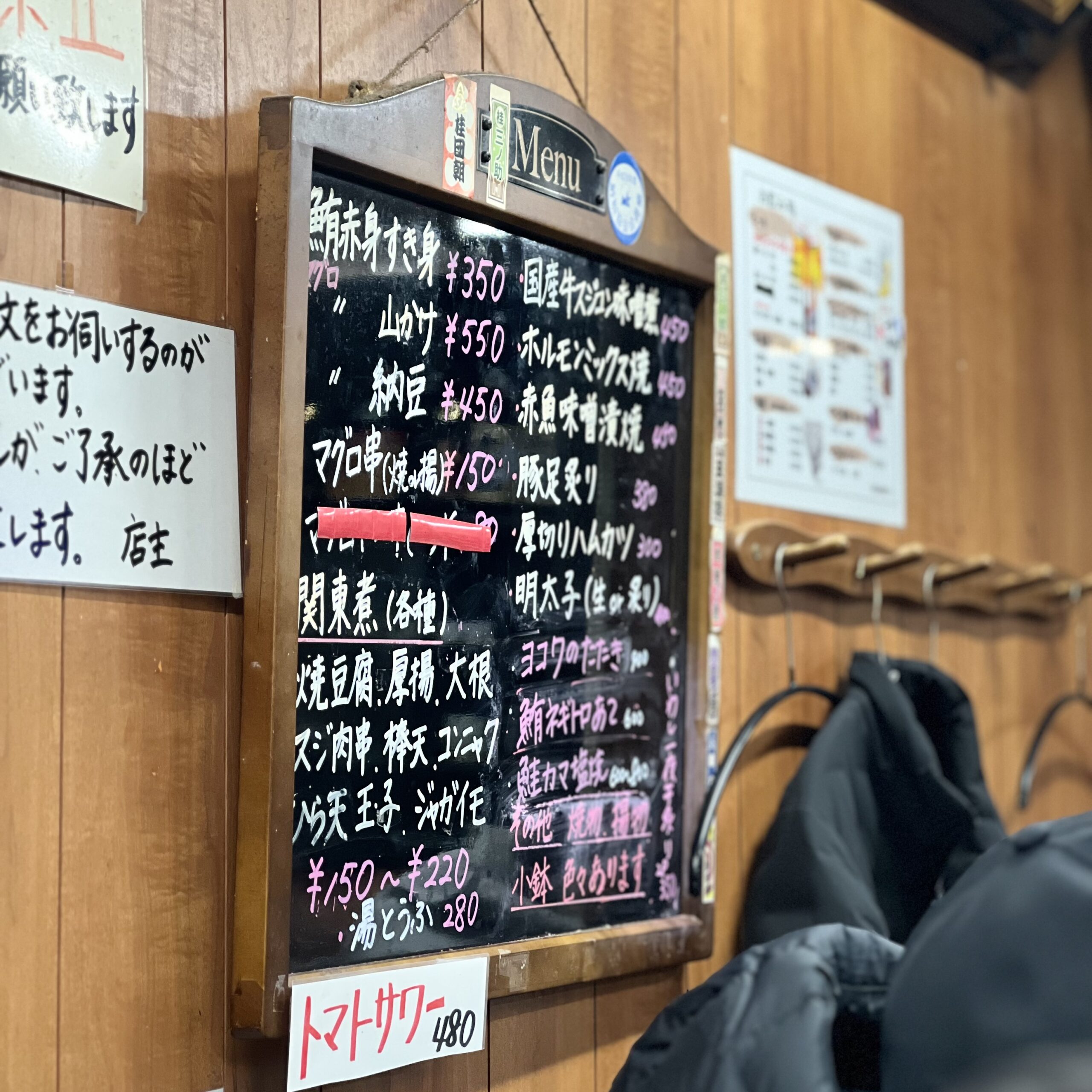 メニューは立ち飲み店とは思えぬ豪華食材がズラリ。