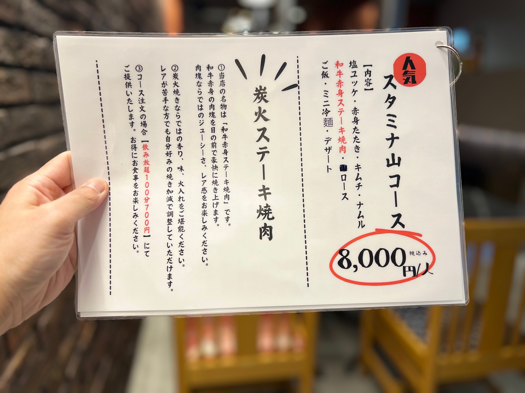 スタミナ山コースは8000円。また飲み放題は700円で付けれるとあって、少し大人の焼肉で利用したい。