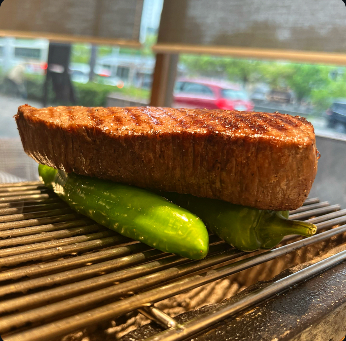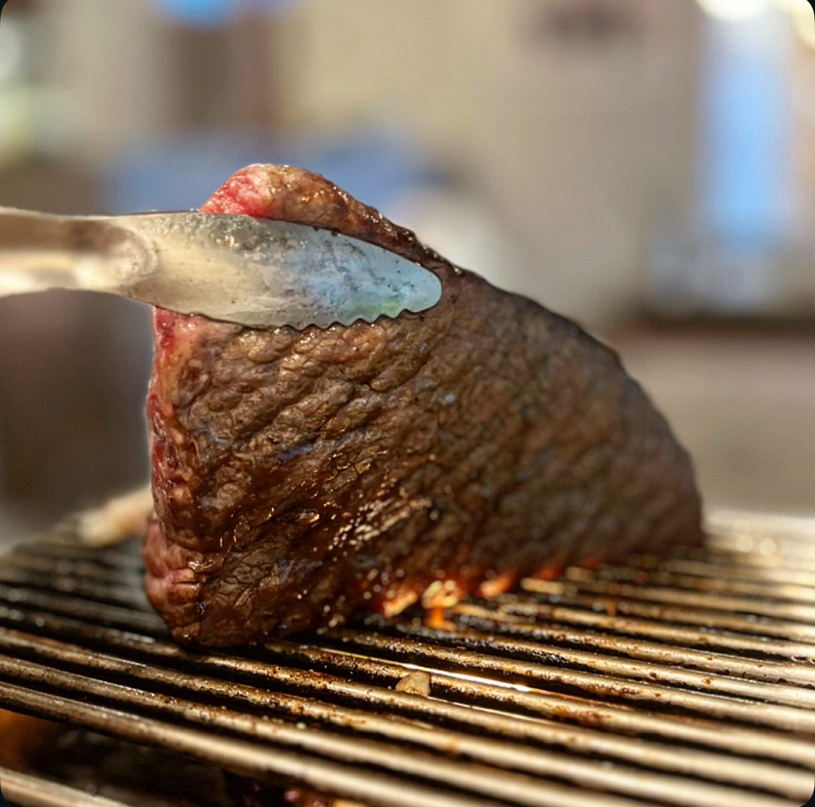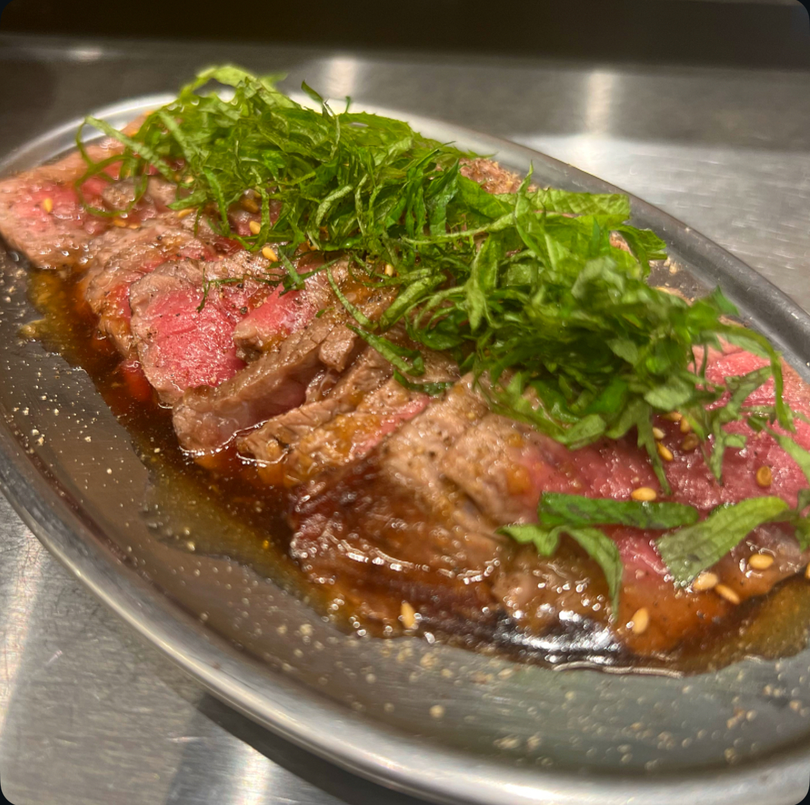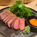 目の前で炭火で焼き上げた塊肉をカット違いでステーキと焼肉で味わえます。
