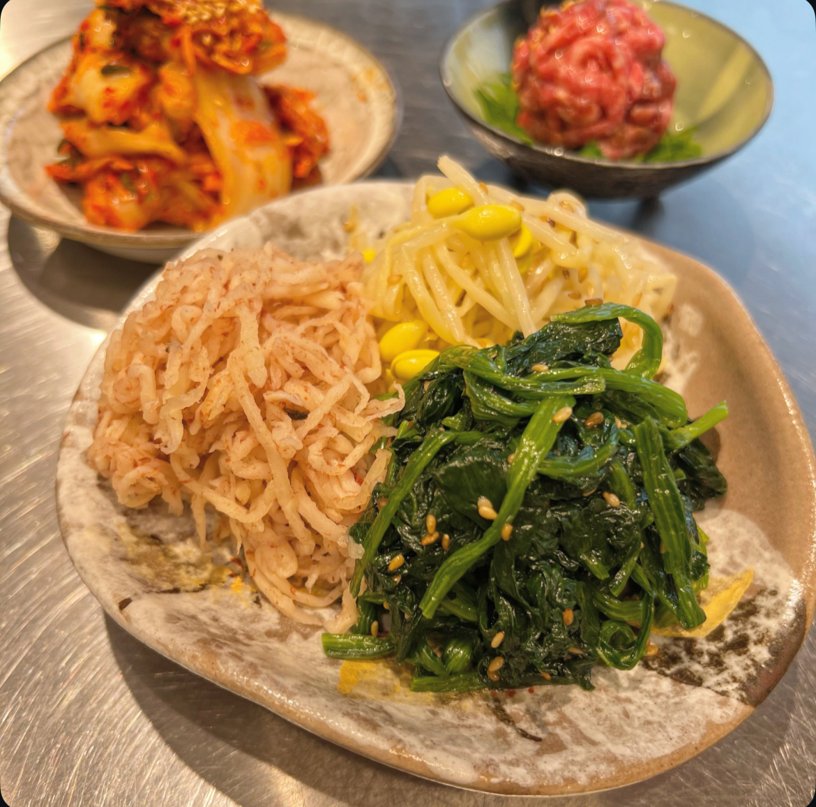 ステーキは塩、山葵、焼肉は特製タレでいただきます。