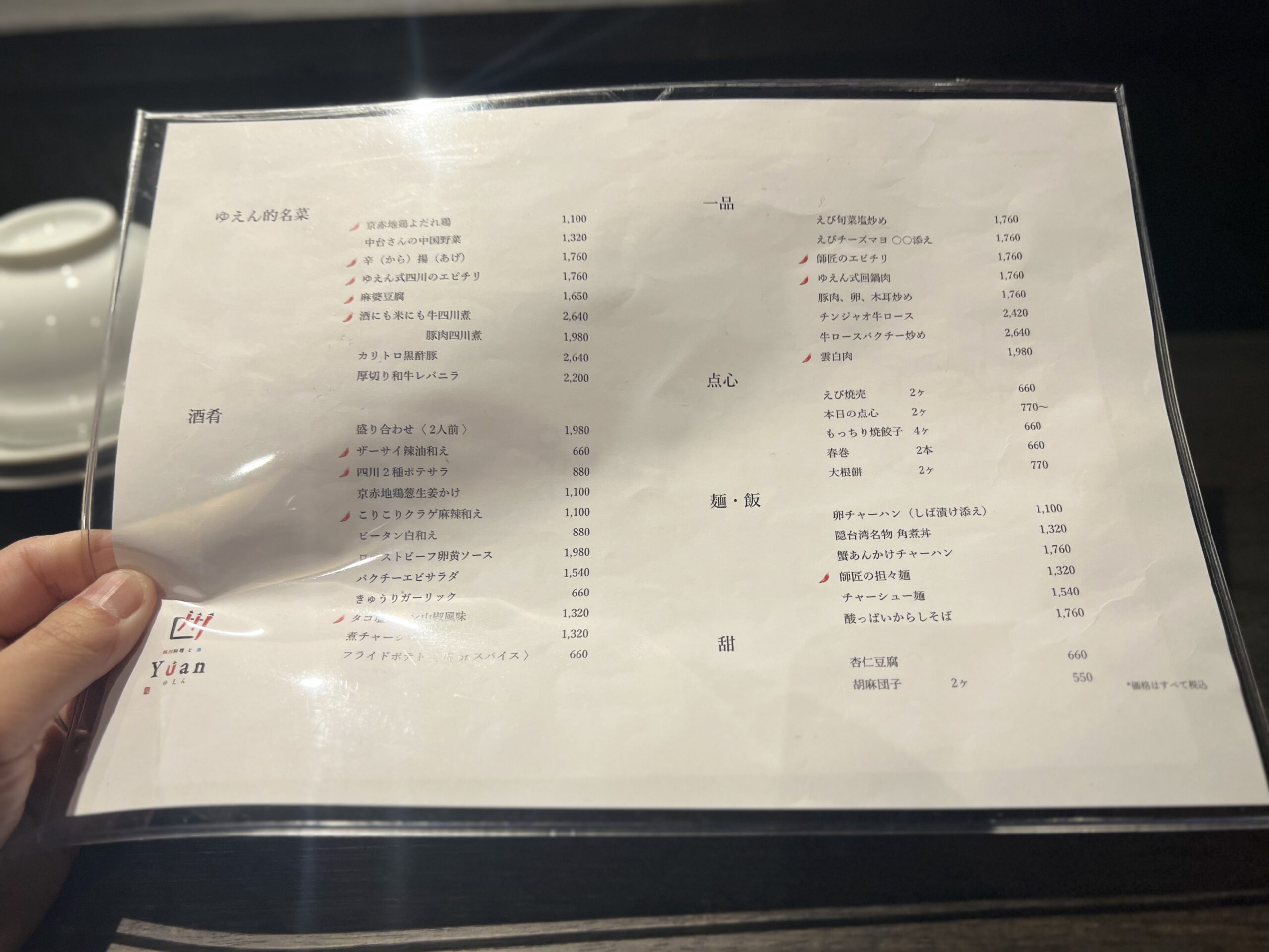 酒肴から一品、点心、ご飯ものから麺まで幅広くラインアップ。